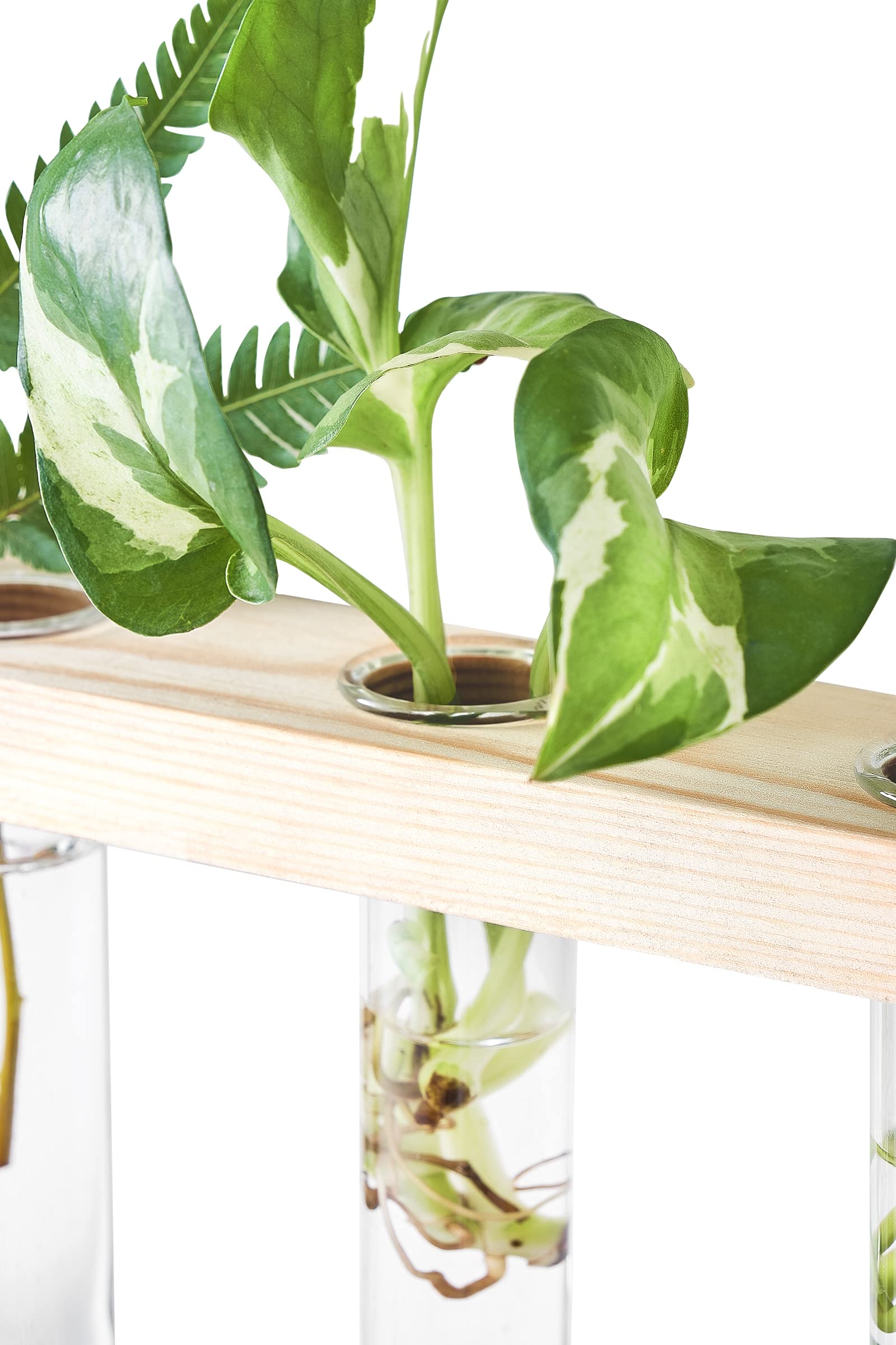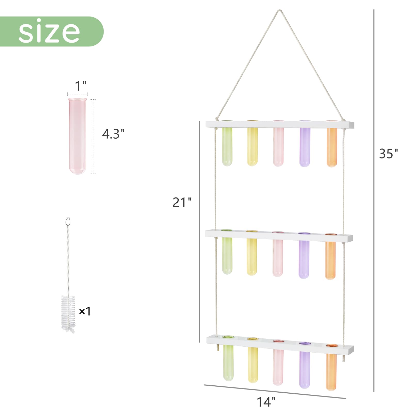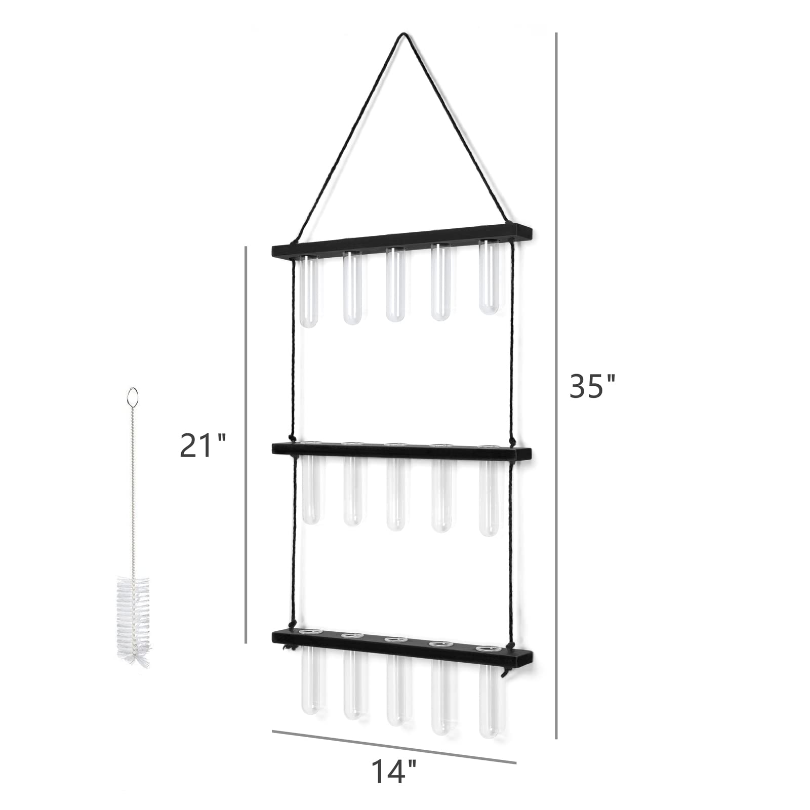 - Size: Wooden holder: 14.2'' L X 1.8'' W X 0.6'' H; the height between the two wooden holder is 9.7'', total height is 35'', Test tube: diameter is 1'', height is 4.3''. The test tube glass planter can be easily removed to change water or clean. Note: No plants or props included in this item!