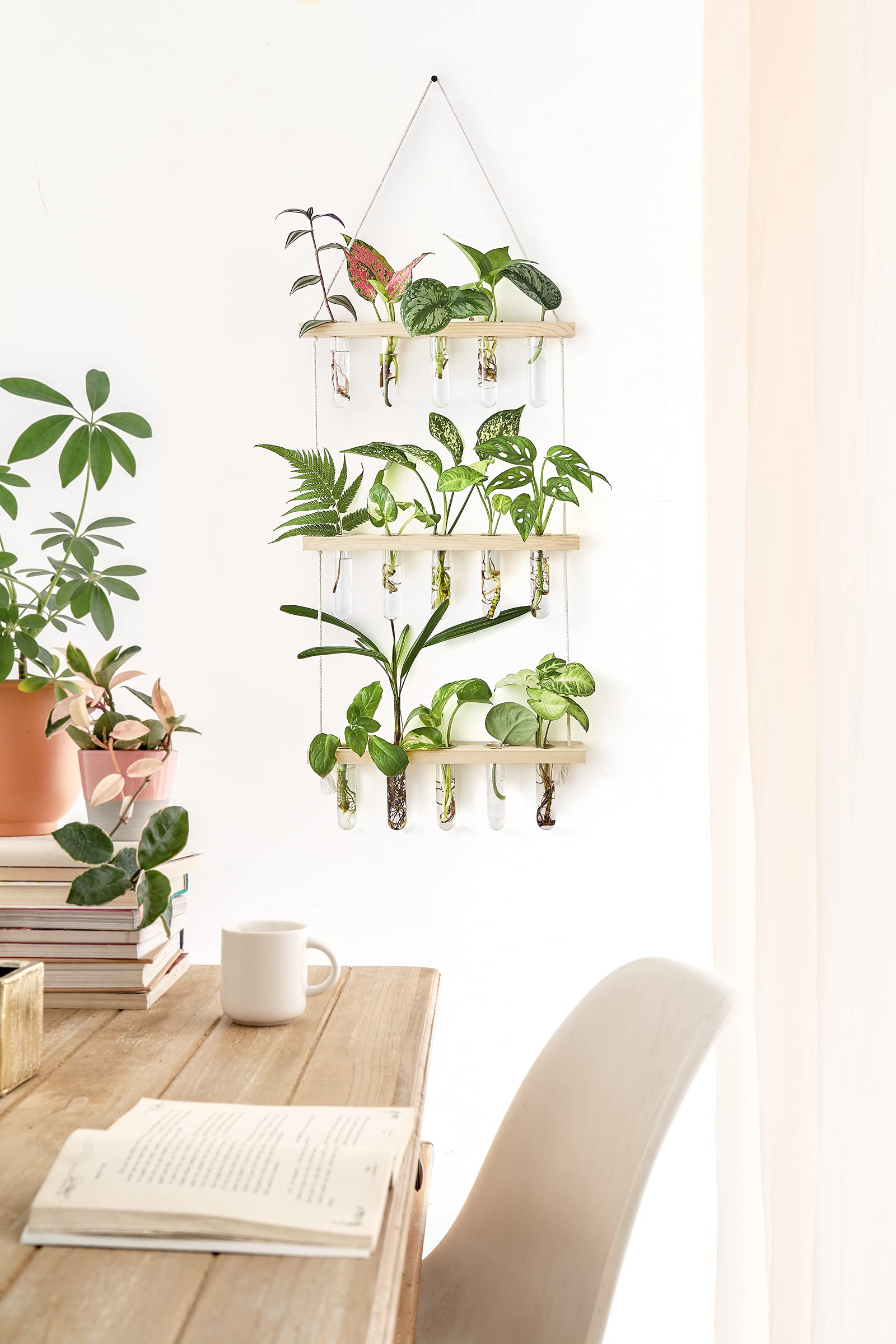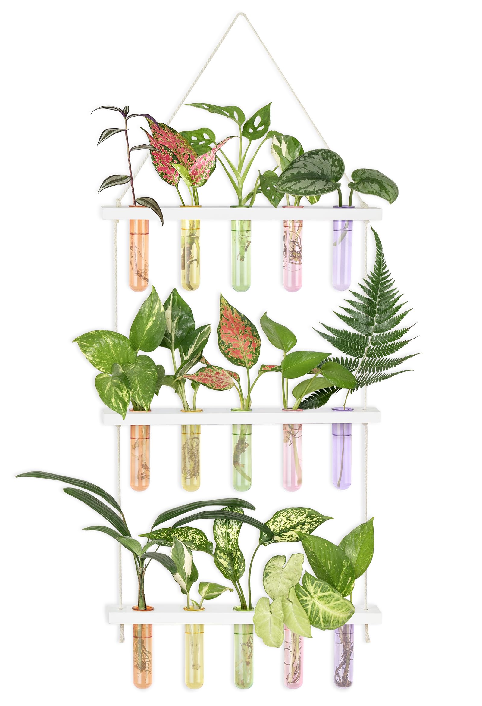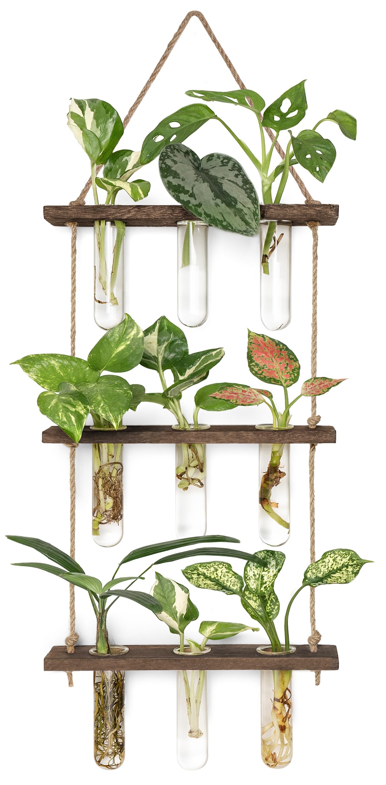 - Unique design: Simple and elegant style test tube propagator suit any style room. The three tiered wooden stand with 15 tubes maximizes space and hold more plants, it adds nice touch to your house, put it on window sill, art wall for decoration in livingroom, dingroom, kitchen, dormitory and bedroom.