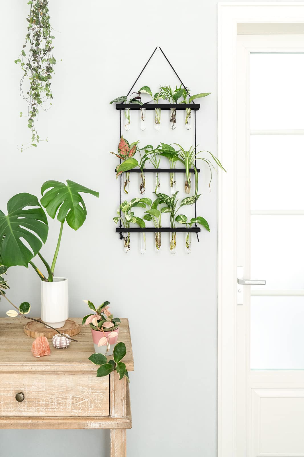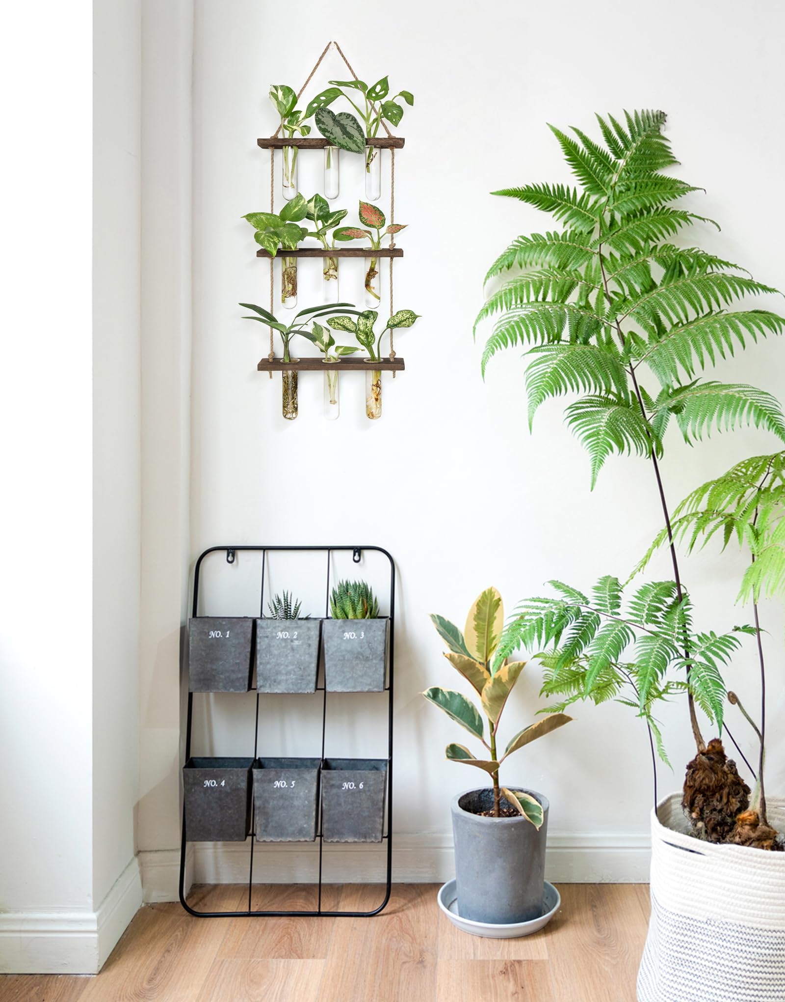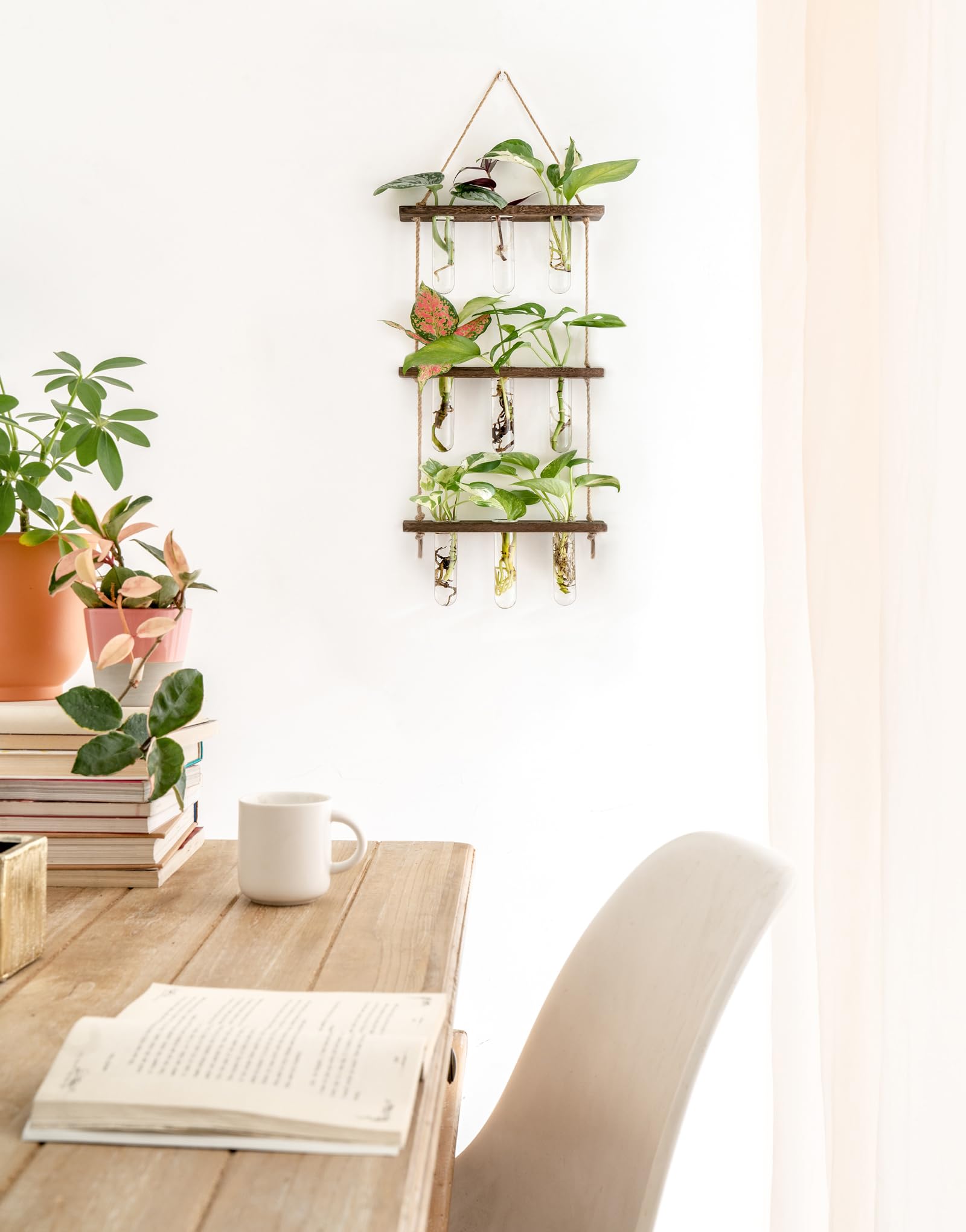 - Unique design: Simple and elegant style test tube propagator suit any style room. The three tiered wooden stand with 15 tubes maximizes space and hold more plants, it adds nice touch to your house, put it on window sill, art wall for decoration in livingroom, dingroom, kitchen, dormitory and bedroom.