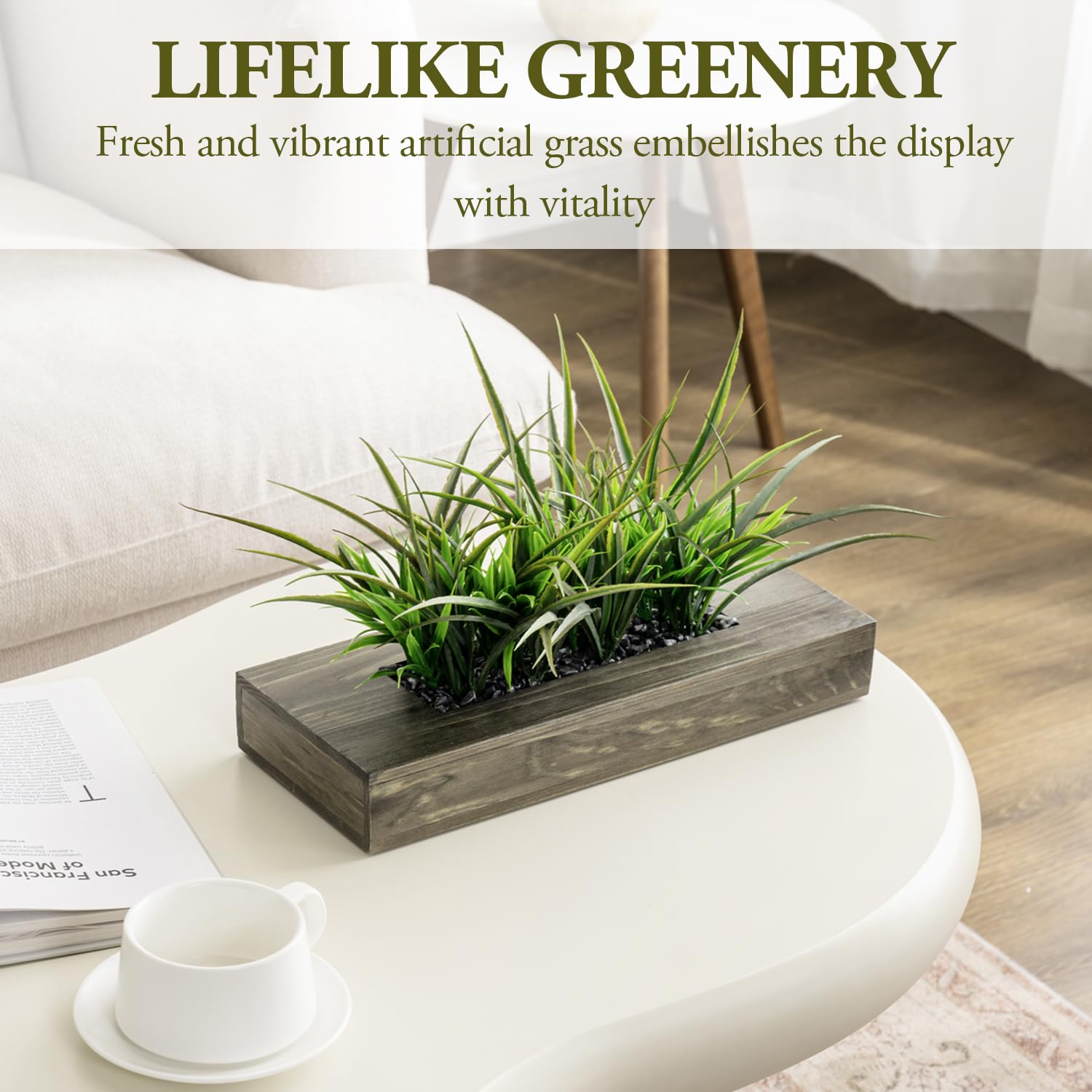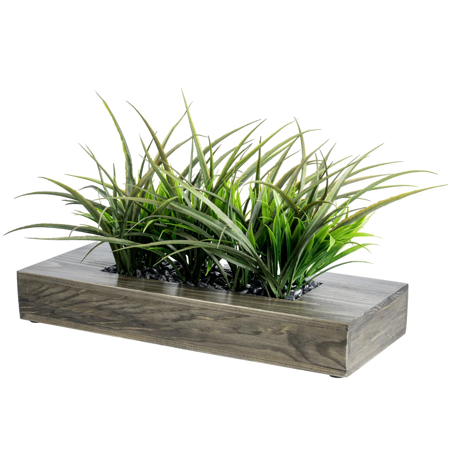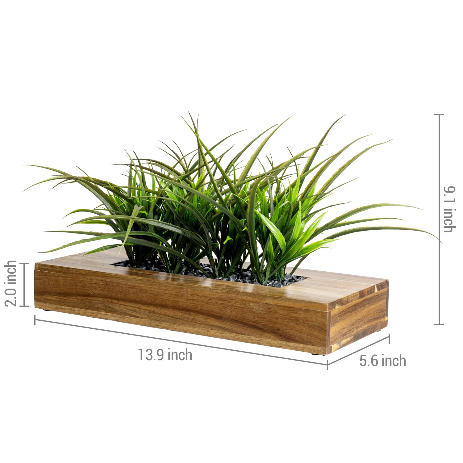 - artificial fake faux grass plants indoor in rectangular wood pots; home house bathroom coffee table shelf office desk decor decorations
