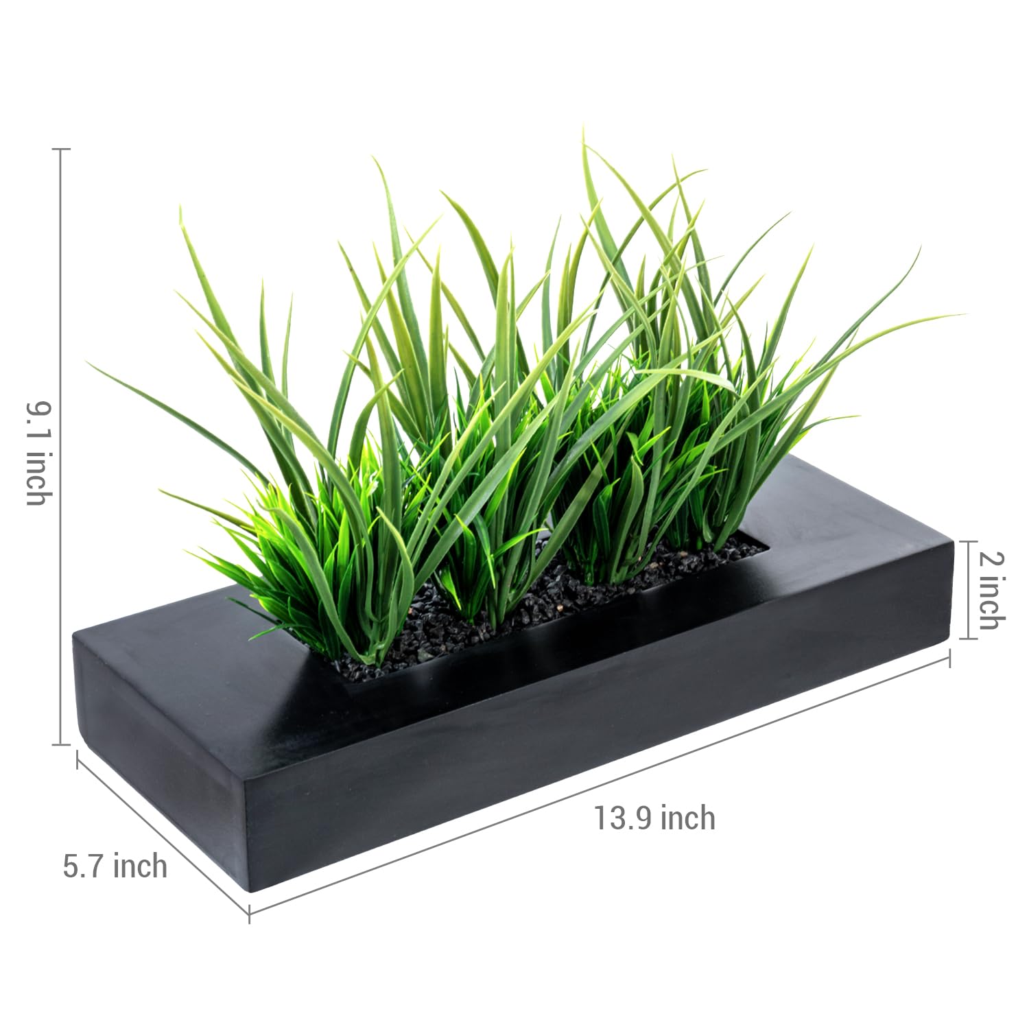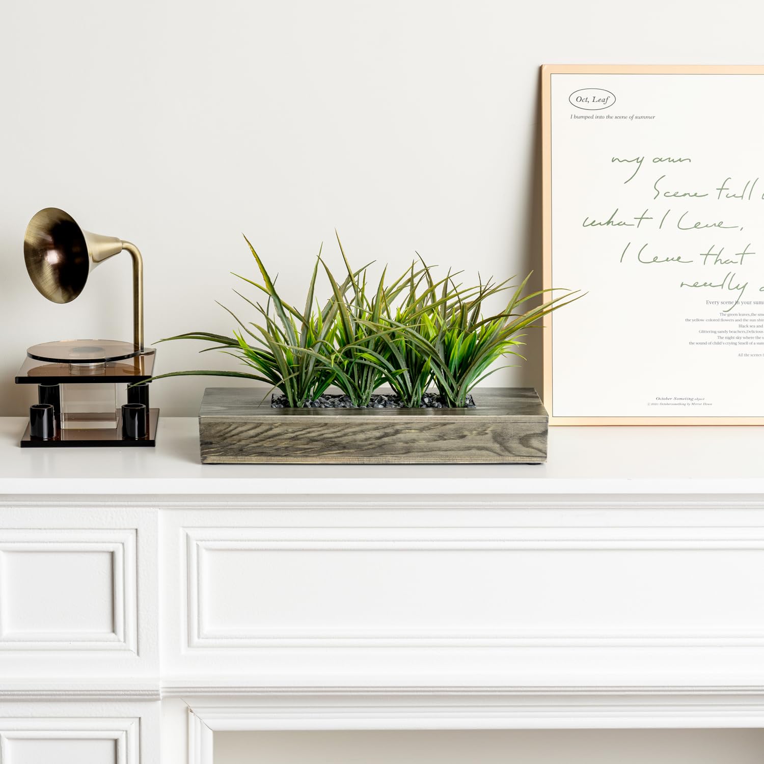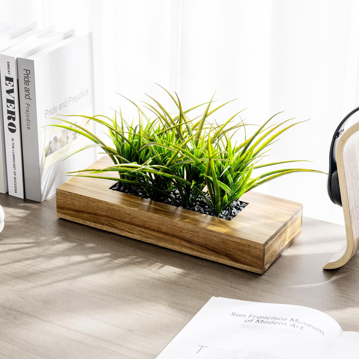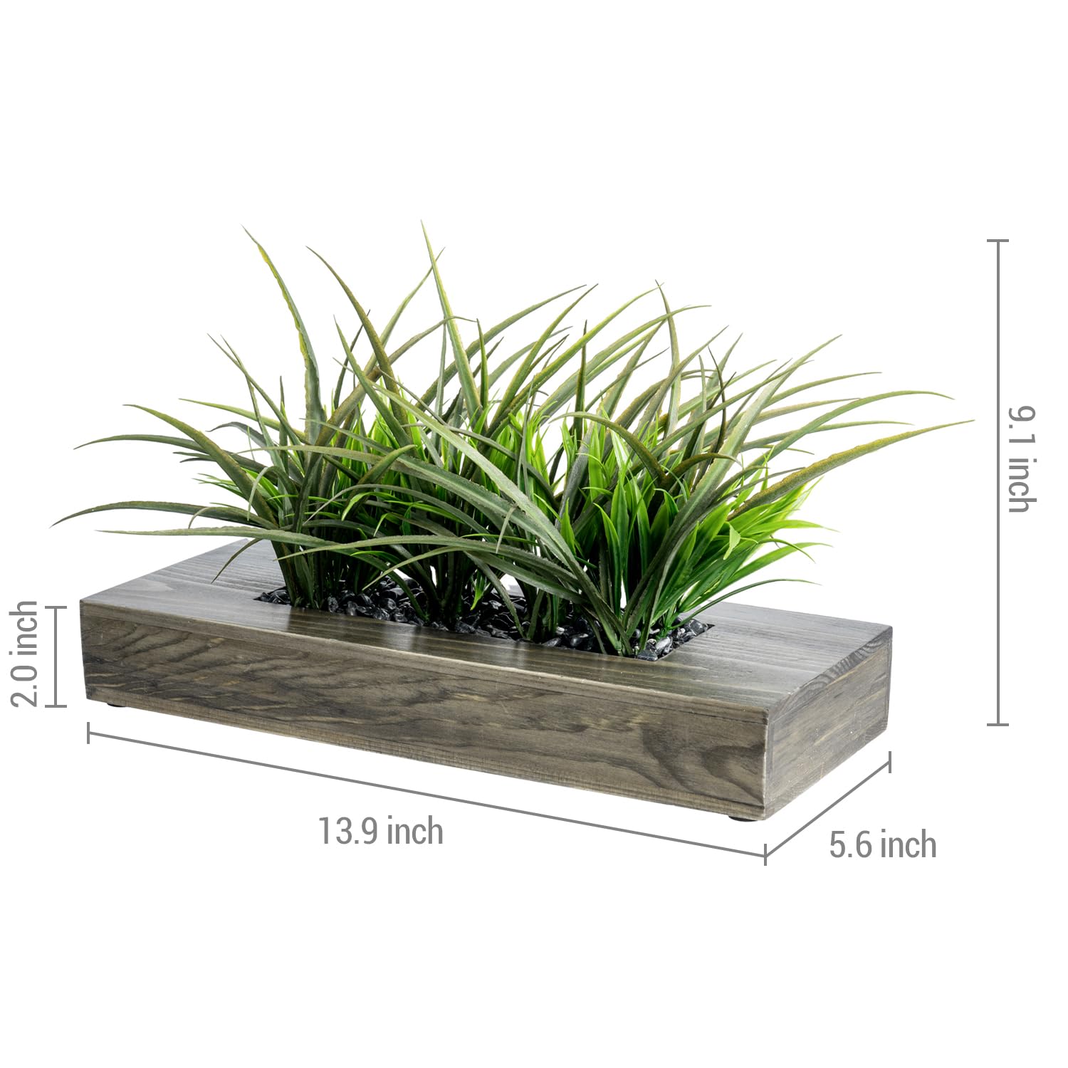 - artificial fake faux grass plants indoor in rectangular wood pots; home house bathroom coffee table shelf office desk decor decorations