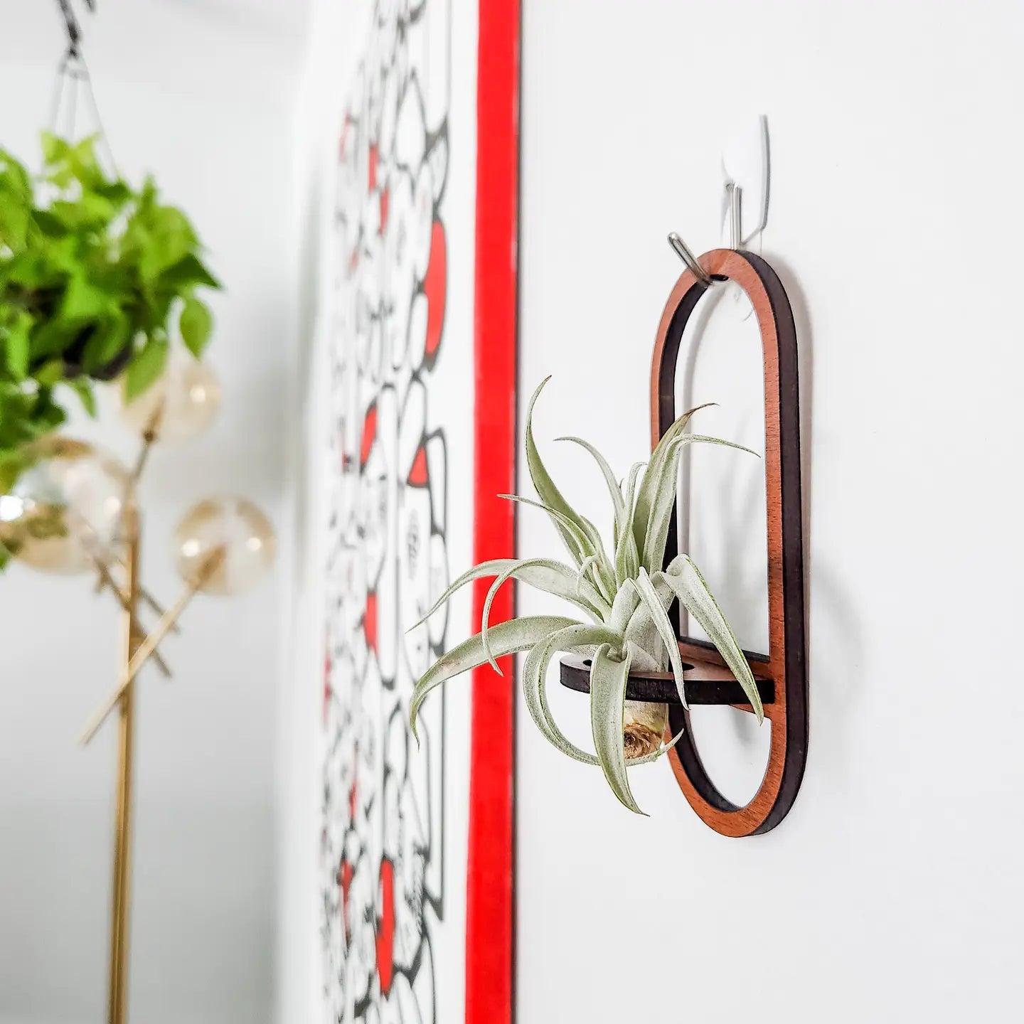 Create a peaceful and inviting atmosphere in any room with this Oval Wooden Air Plant Display. Perfect for adding a touch of greenery and natural beauty to your walls, this unique display is sure to be a favorite.