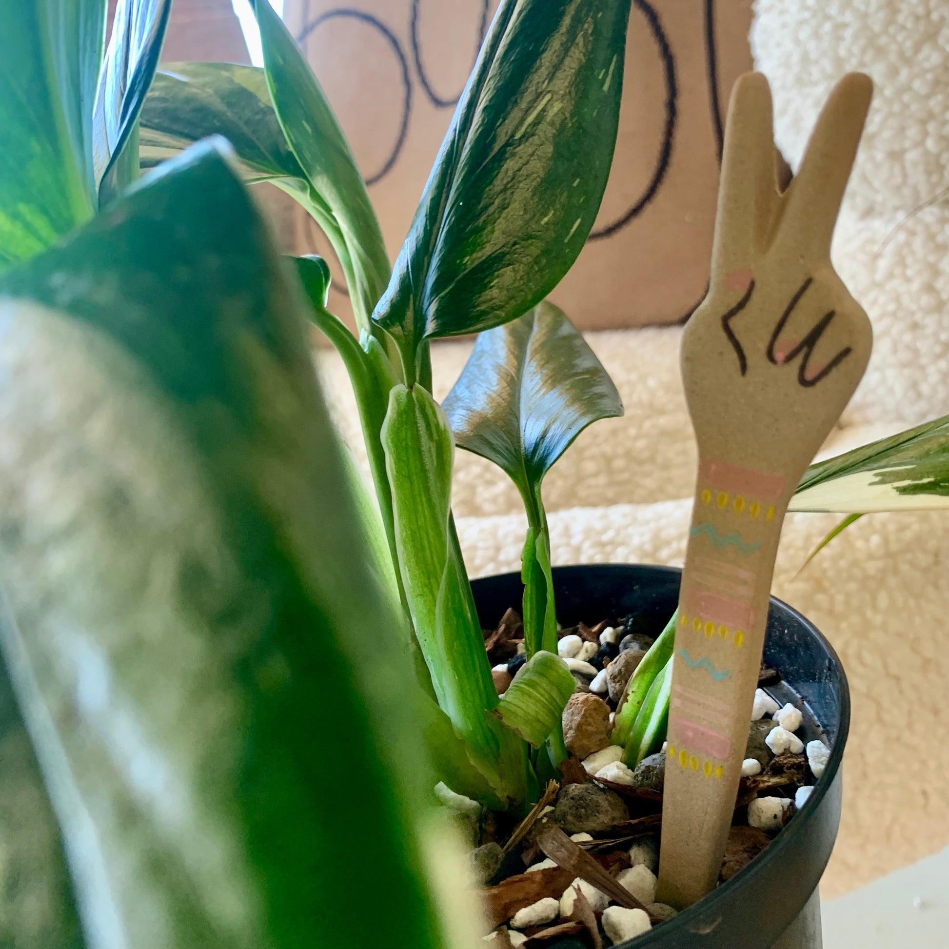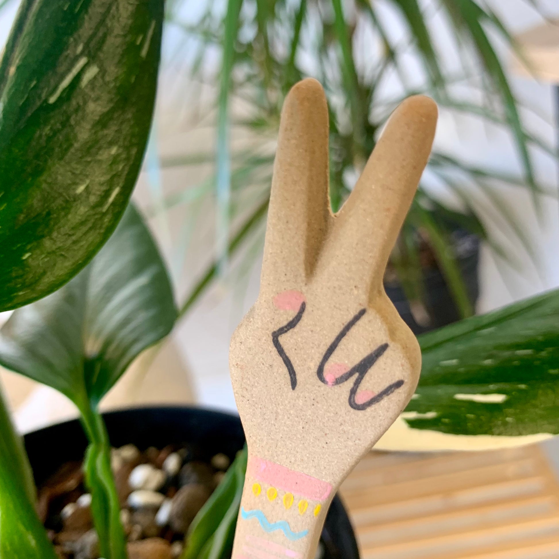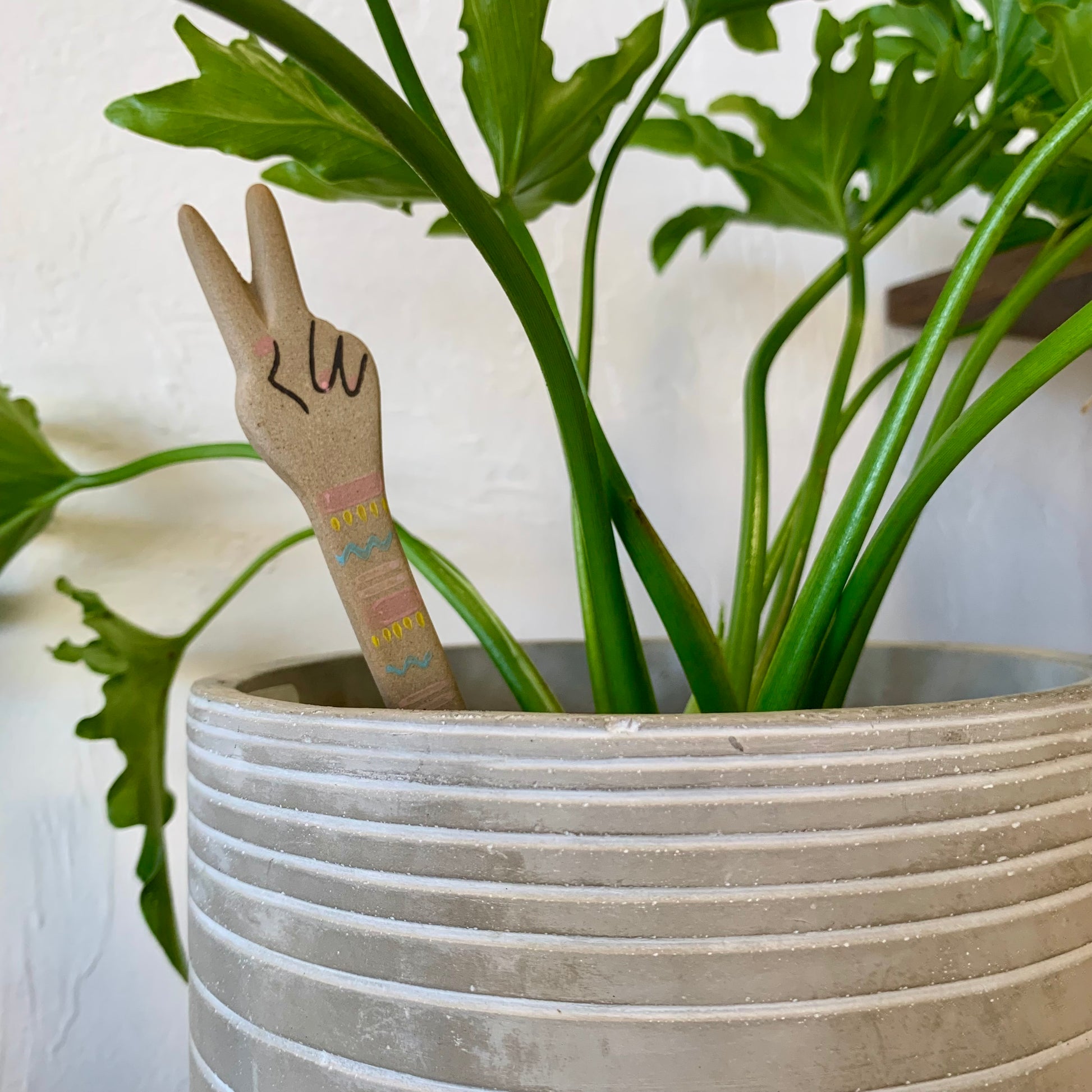Bring joy to any plant lover with this delightful ceramic plant accessory that adds a touch of peace. Its charming design, hand-painted pattern, and playful pops of color on a matte finish make it the perfect add-on or gift.