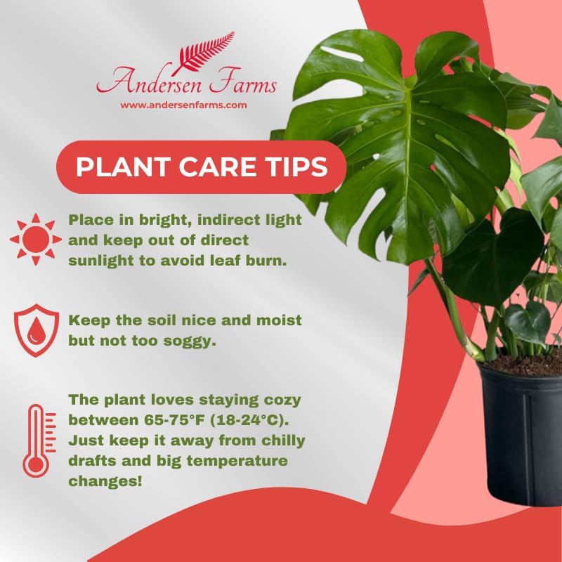 | Product Care Instructions | Low to bright light, allow soil to dry slightly between waterings, iconic split leaves. |