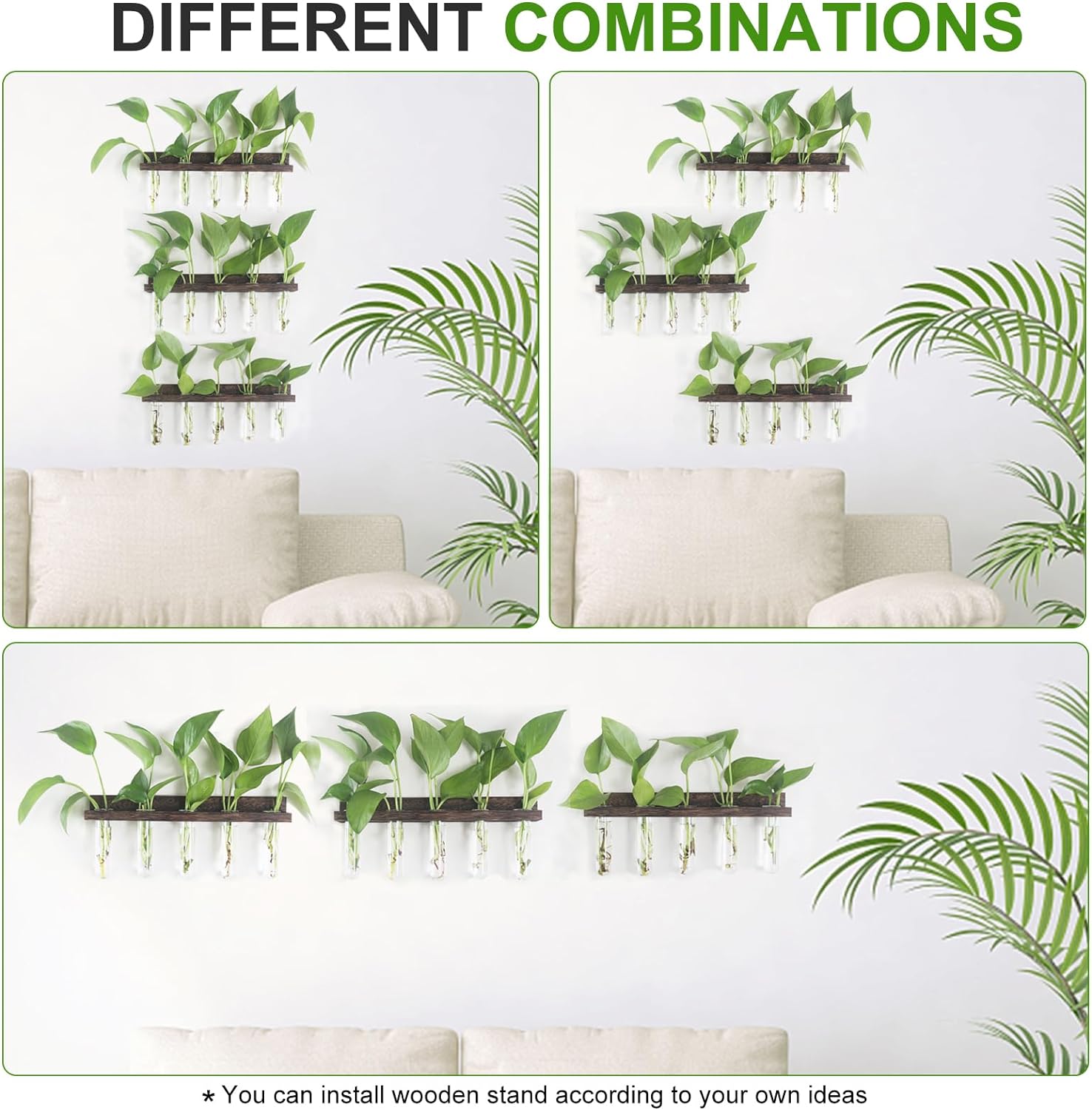 - Unique design: Our propagation stations includes 3 wooden frame and 15 test tubes, allowing you to reproduce more plant babies at once. And each layer of wooden frame can be installed separately and you can add wall decoration green creative ways according to your own creative design combination
