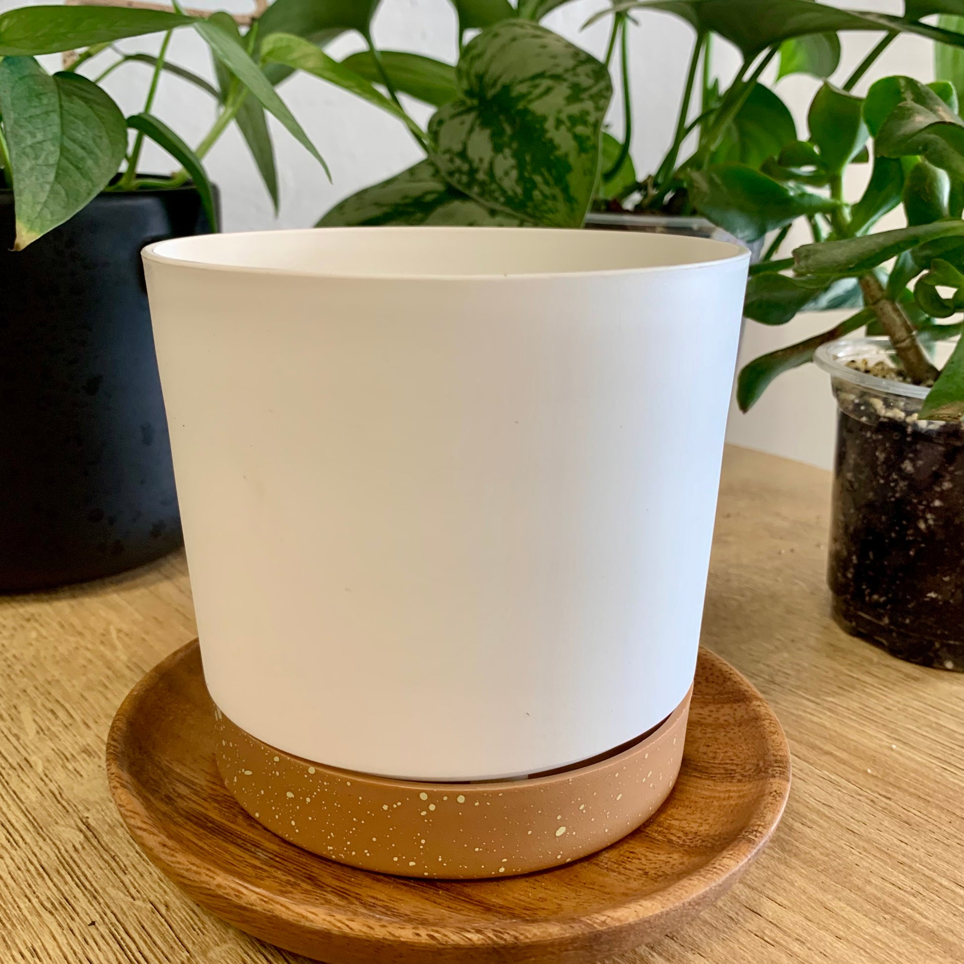 A great size for your small indoor and outdoor plants needing to size up! Get ready to take your indoor and outdoor plant game to the next level with the perfect sized pot for your growing needs! The sturdy plastic material and removable drainage tray make it a practical and durable choice for all your plants. Say goodbye to repotting struggles and hello to healthy and thriving plants!