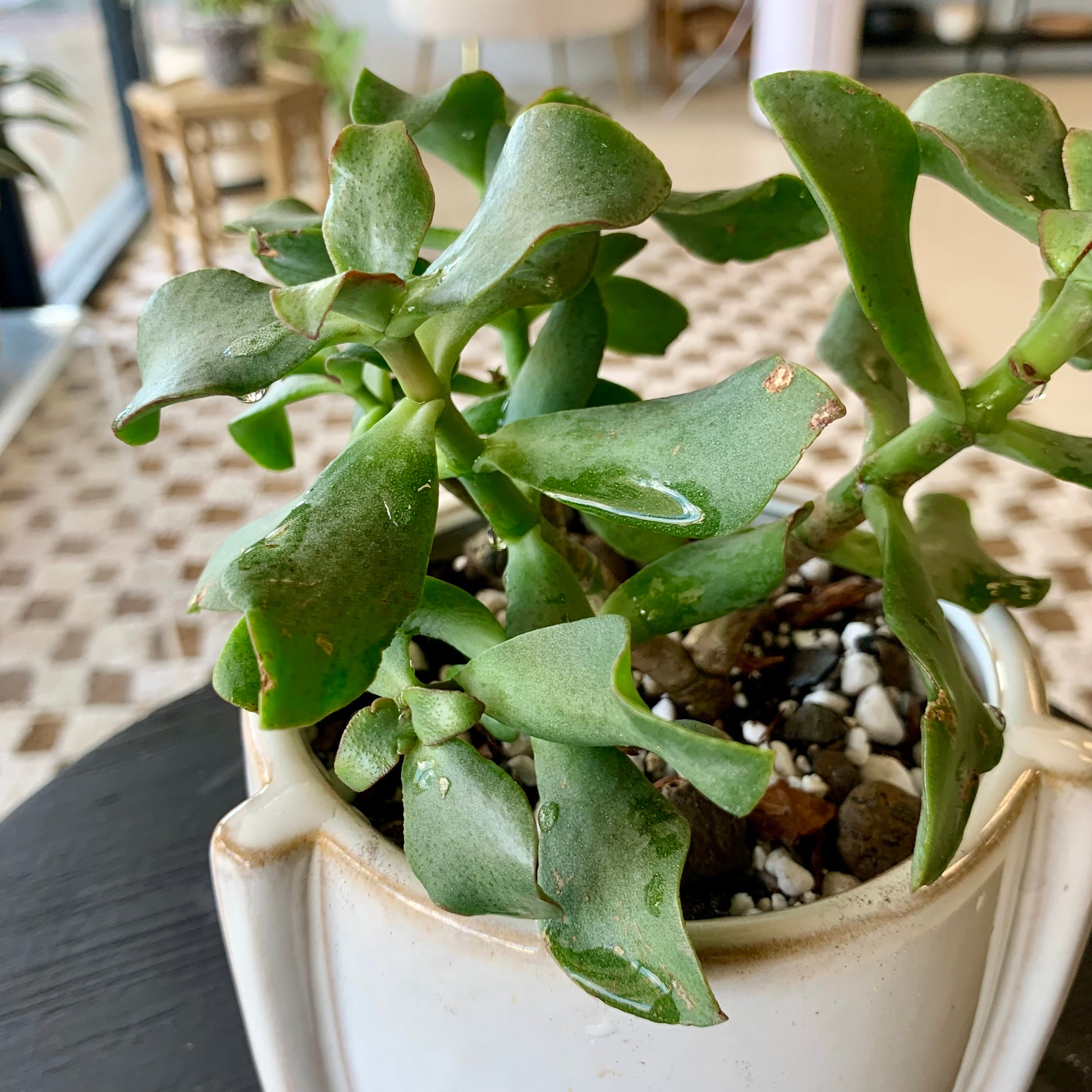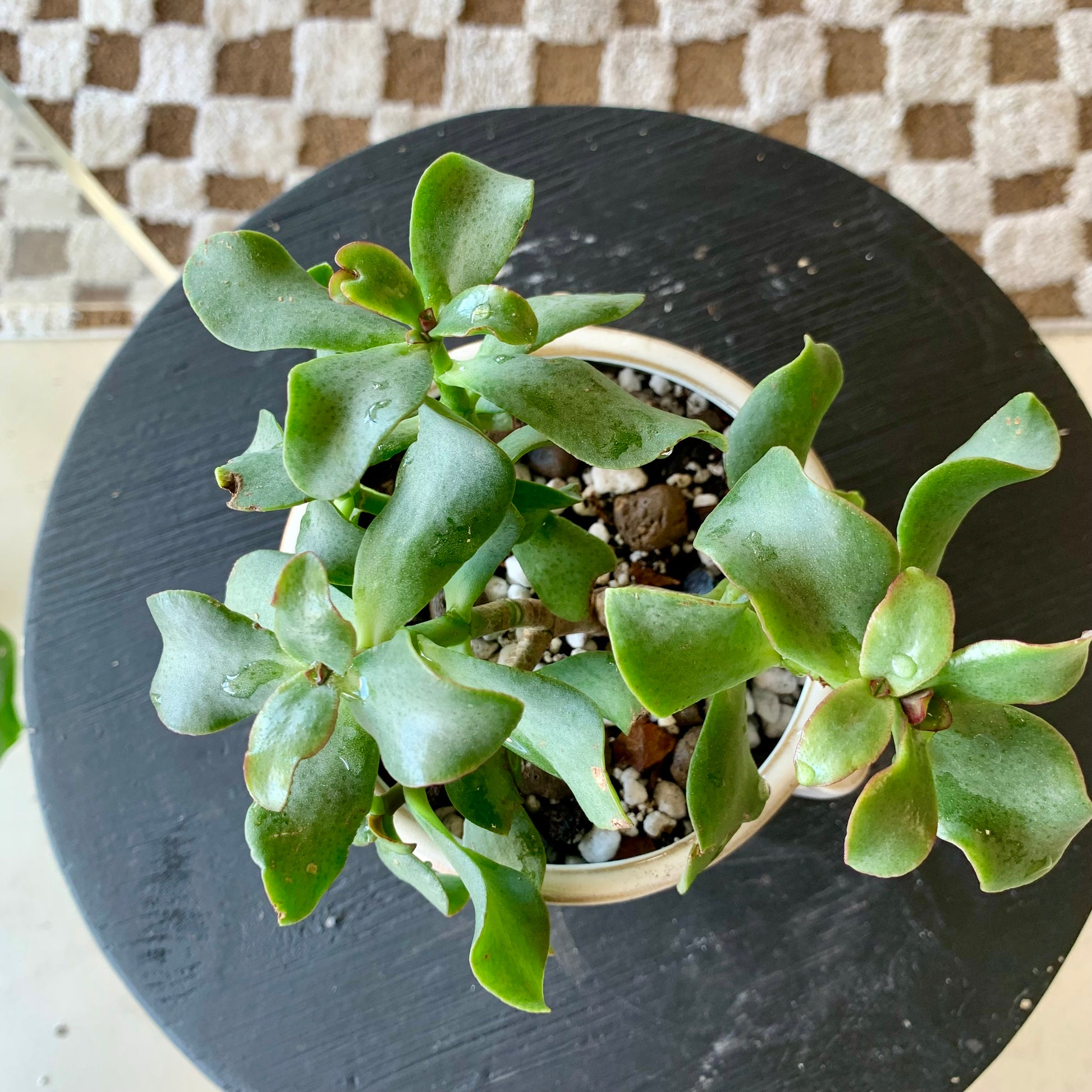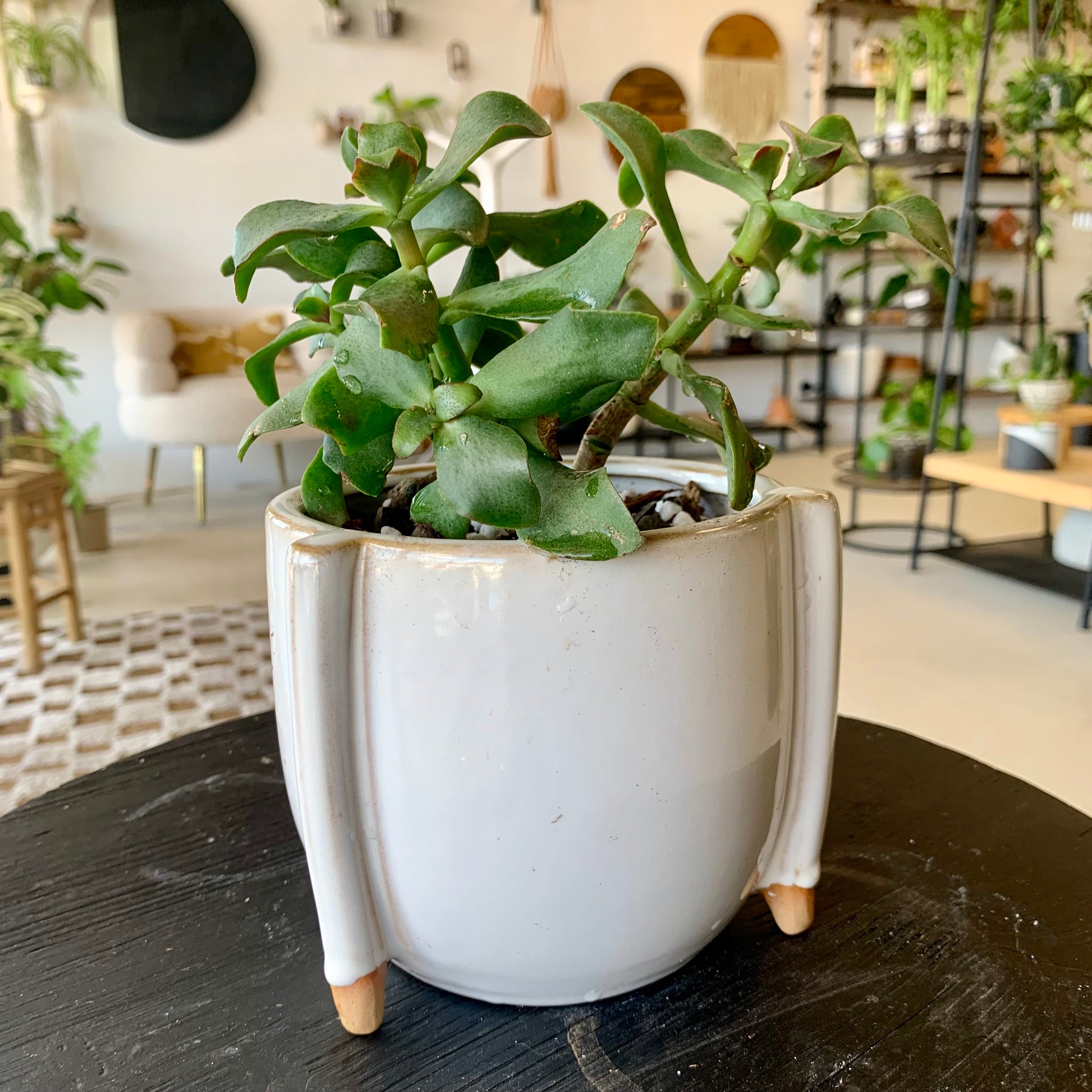 Crassula arborescens undulatifolia “Ripple Jade” is a succulent shrub that is perfect in the home or office. It flowers with white blossoms in the Spring. Plants can grow up to 4' tall.