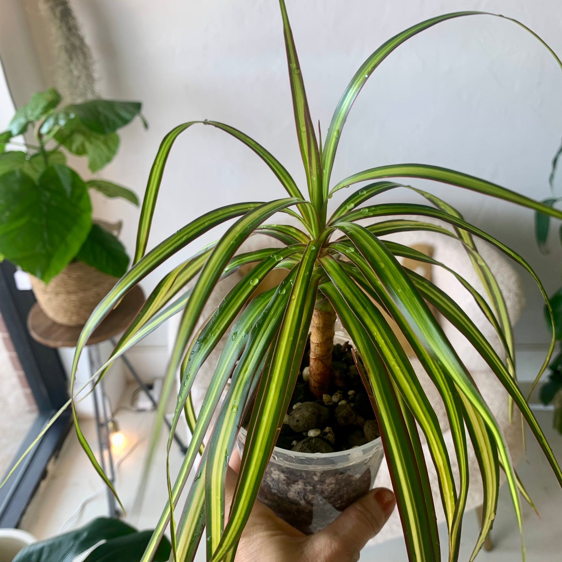 Bring a burst of sunshine to any room with Ray of Sunshine Dracaena (Dracaena marginata 'Ray of Sunshine'). This unique tree-like plant boasts slender leaves with bright yellow stripes, resembling a palm but actually a Dracaena. Find the perfect spot for this vibrant plant, ideally in a bright, indirect light, and give it plenty of space to grow tall (6-10 feet!). The variegated foliage of 'Ray of Sunshine' will surely catch your eye and bring a smile to any corner of your home. Keep the soil moist and he'll thrive in his new spot!