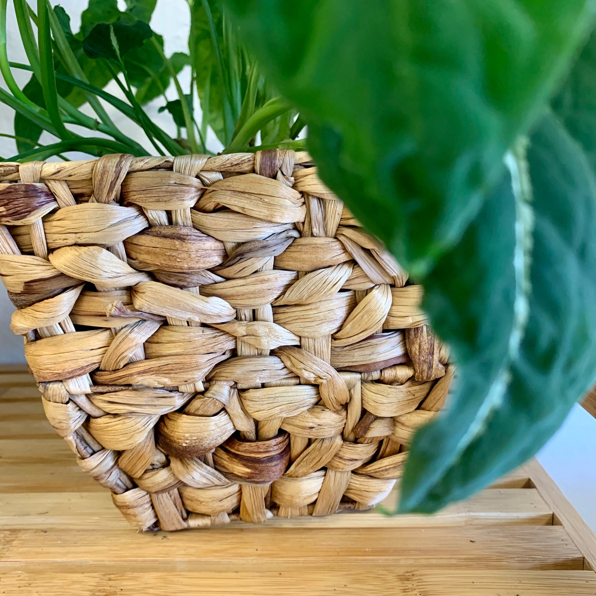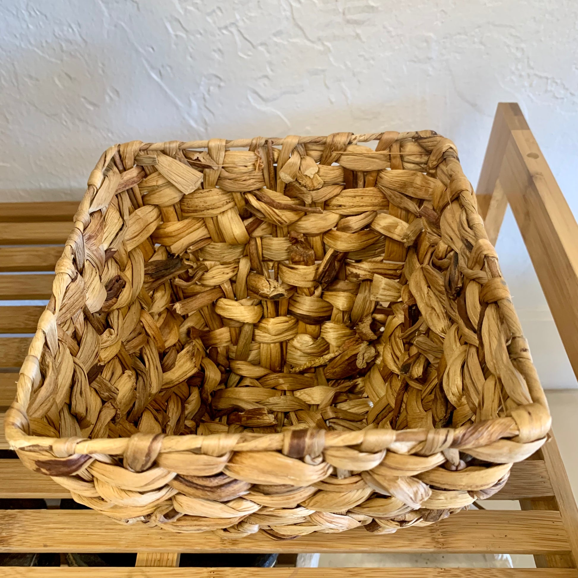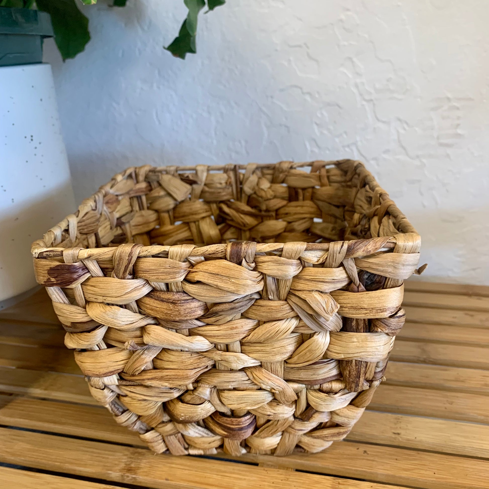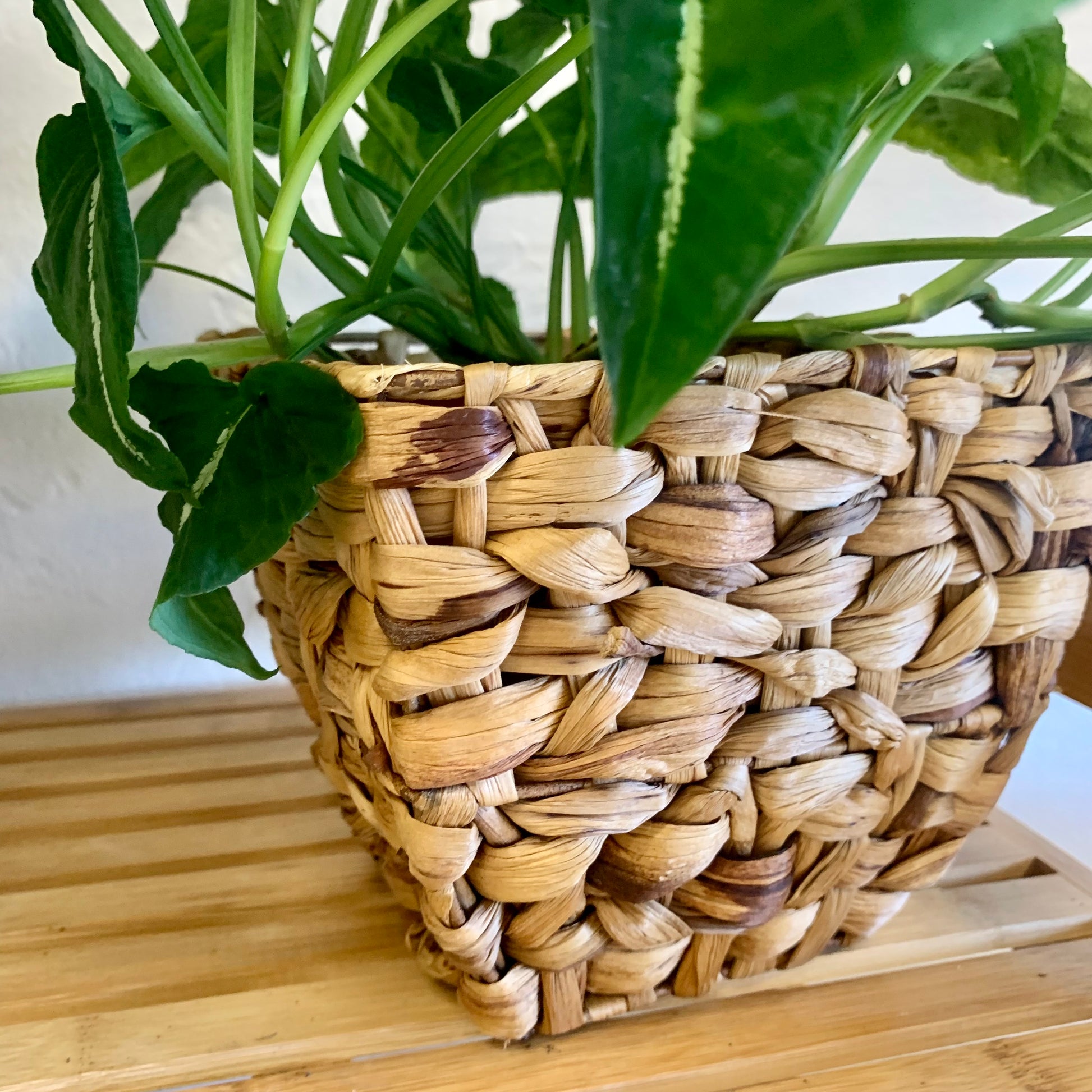 Natural handmade seagrass basket - perfects for a 6" nursery pot. Measures 7" wide at top and 6" tall.