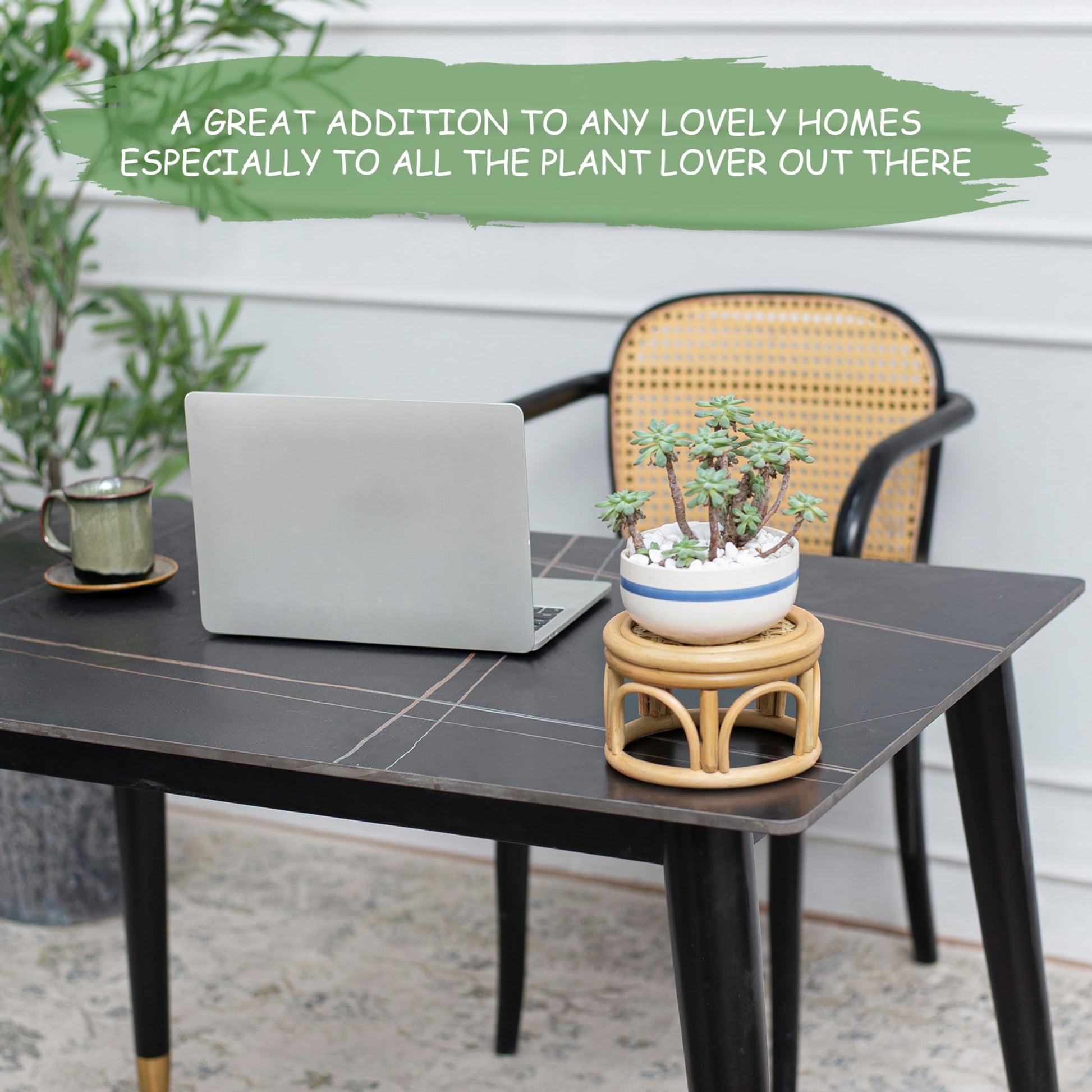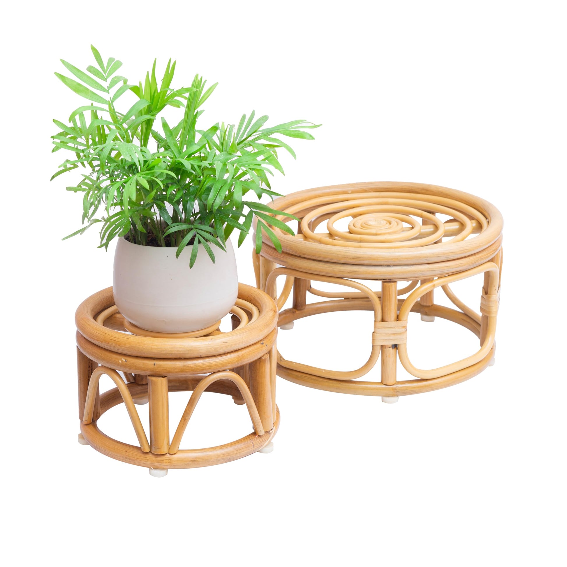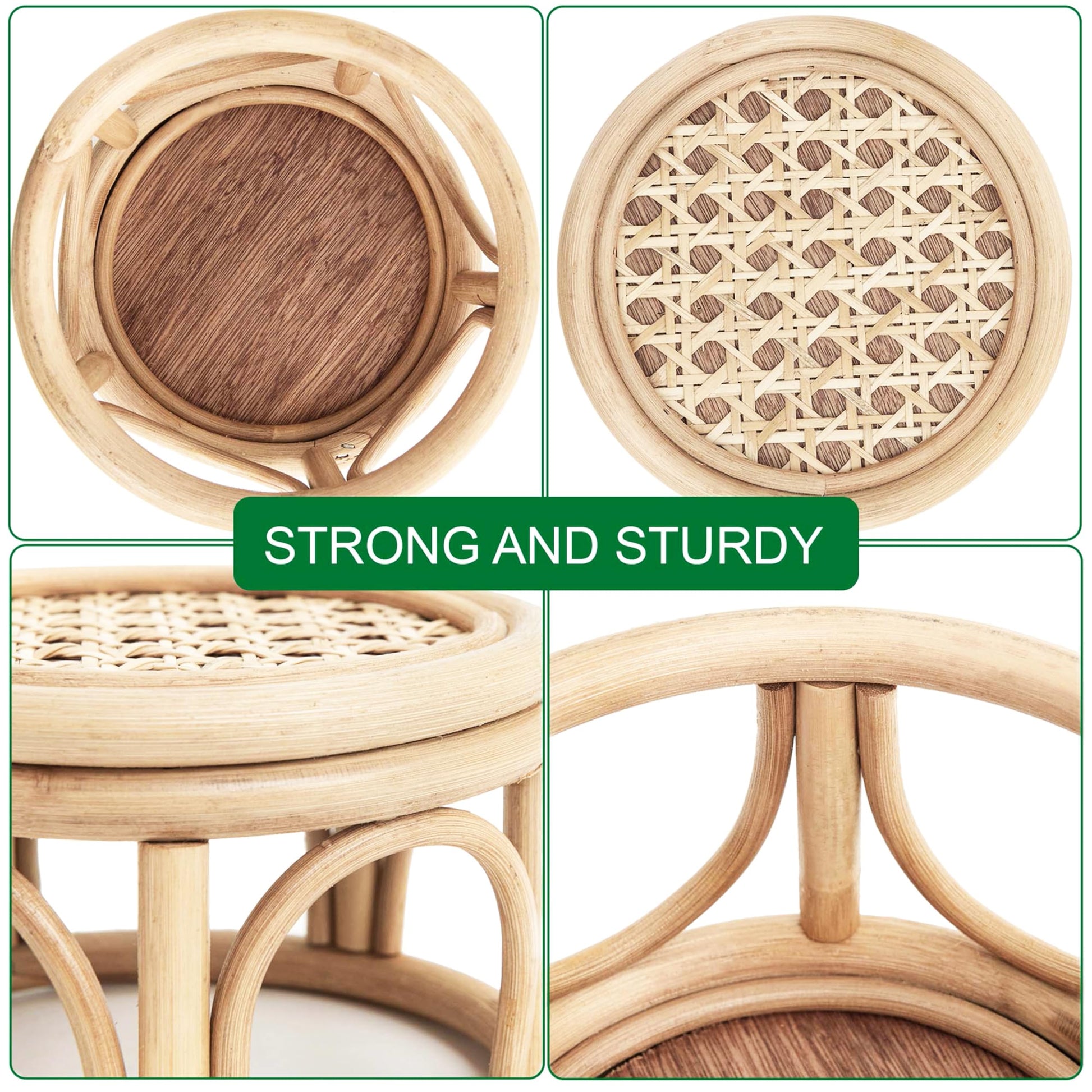 - ☘️ 【SUITABLE SIZE】: The mini size rattan stool display stand is: 6.0 × 4¼ inches, and the small size of our stand is: 8.0 × 4¾ inches. The wicker plant stand has sturdy and durable structure, its 5 thick stand points to firmly support the plant pot. Ideal for your flowerpots. Note: No flower pots !