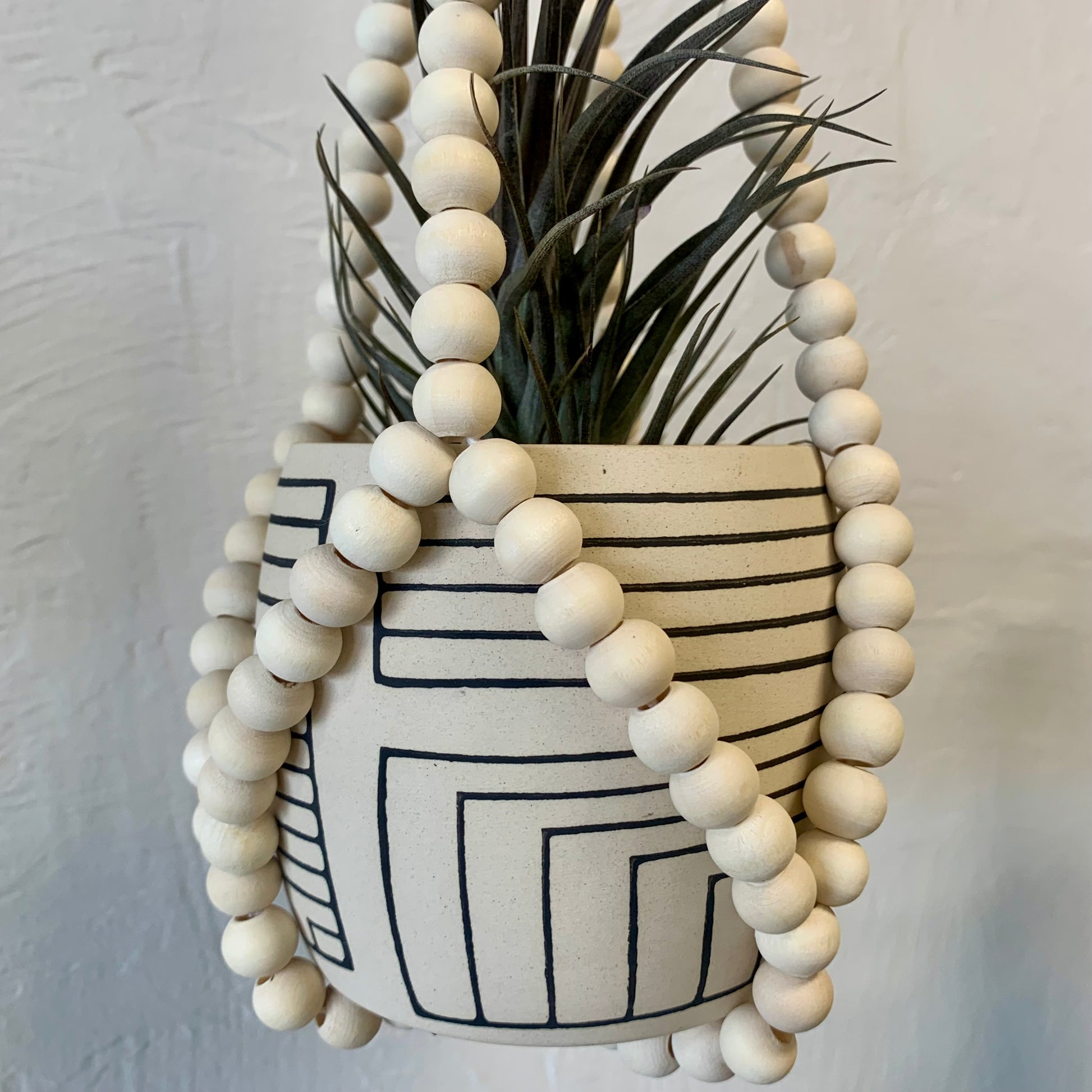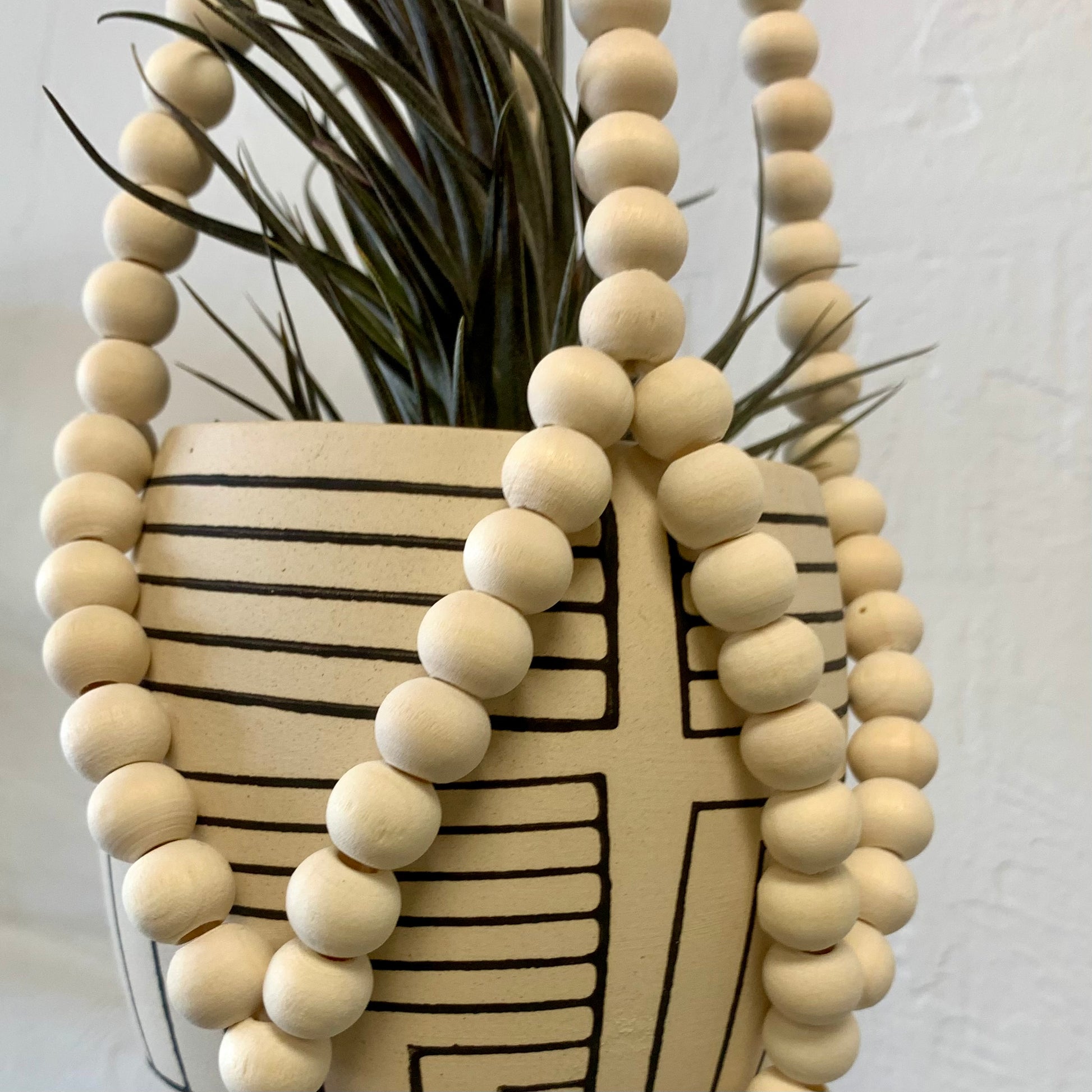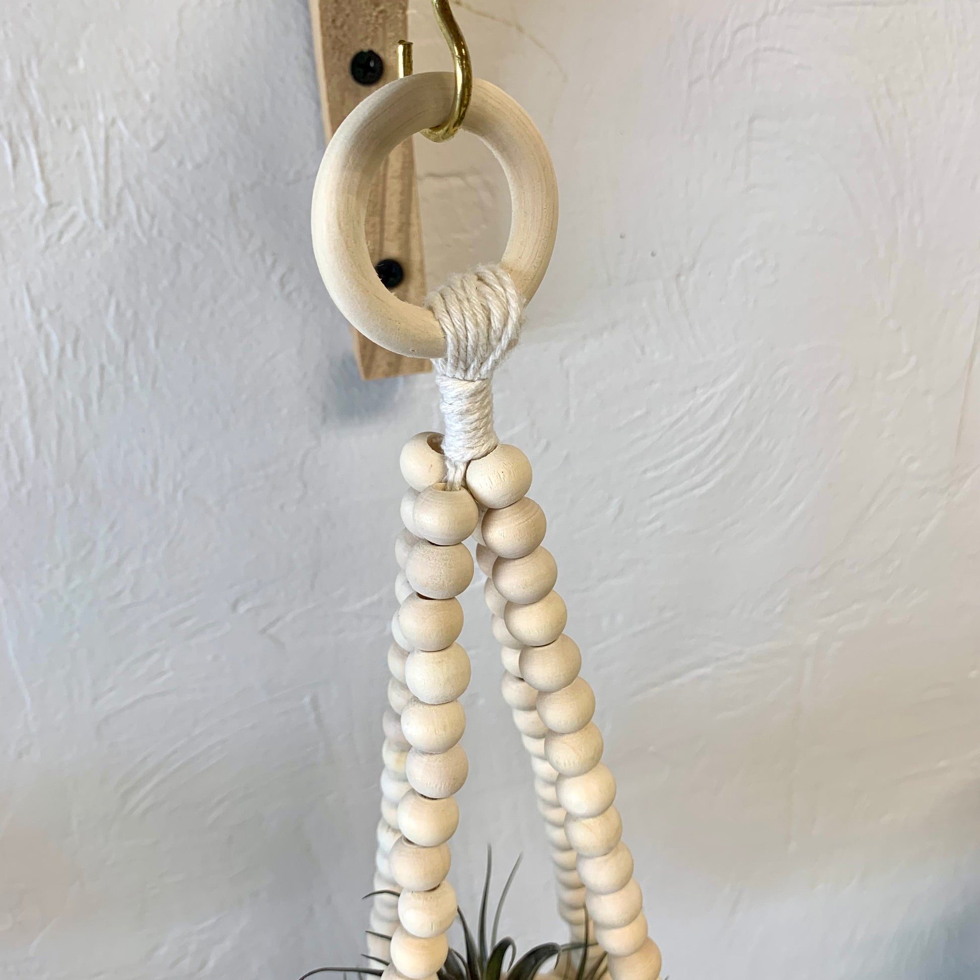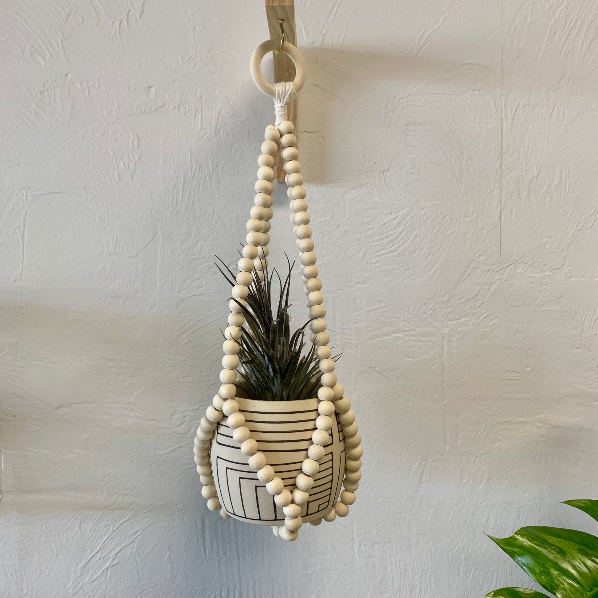 This sweet little plant hanger is perfect for bringing your plants up or displaying in window! Handmade with wooden beads and cotton cord. Add a smile to your face with this one-of-a-kind hanger! Wooden beads are a light natural finish.