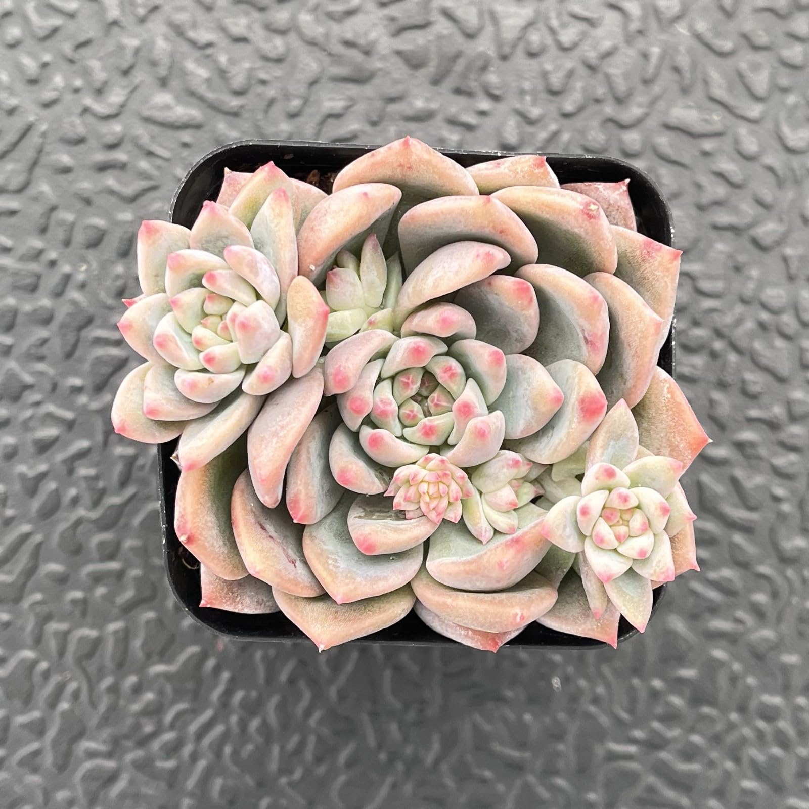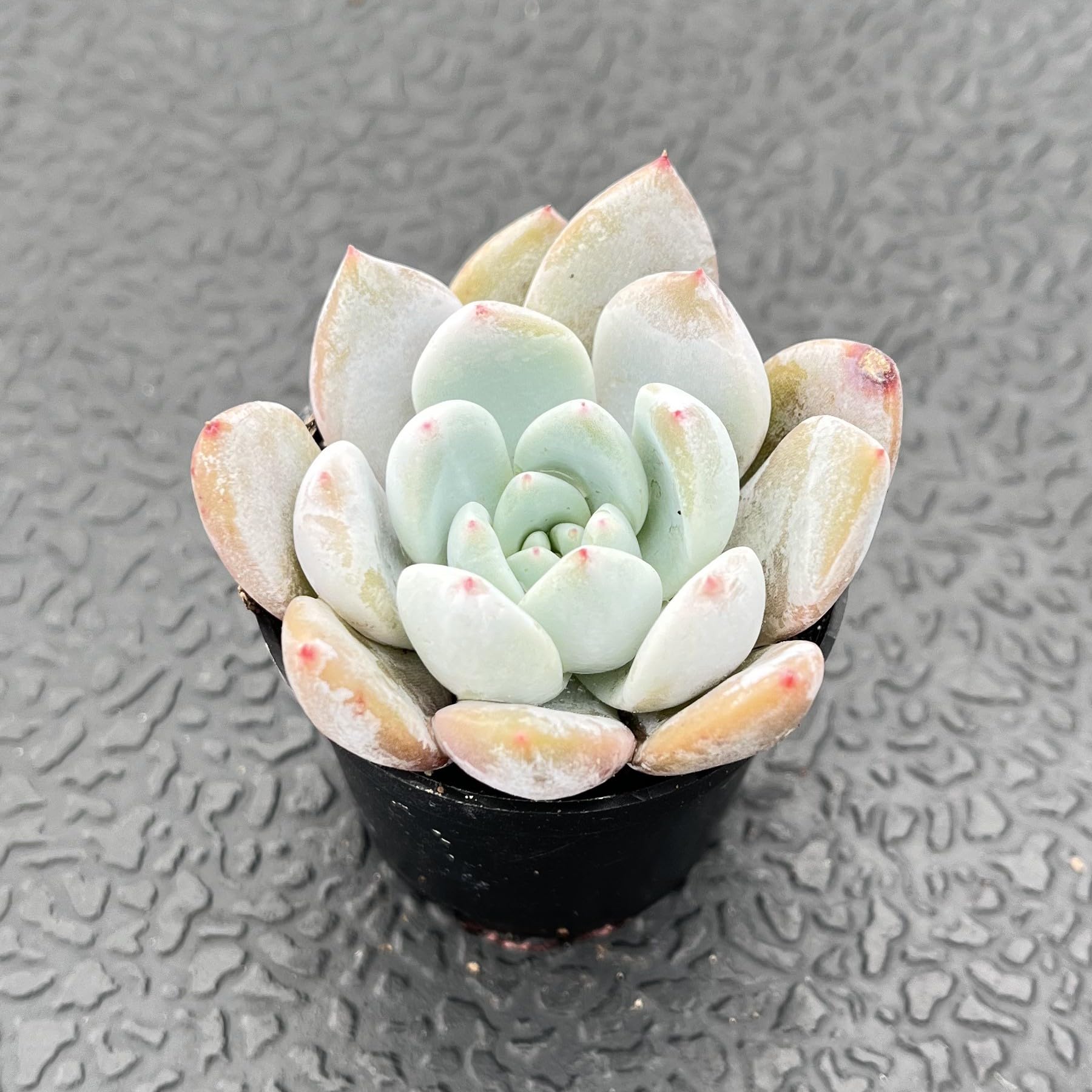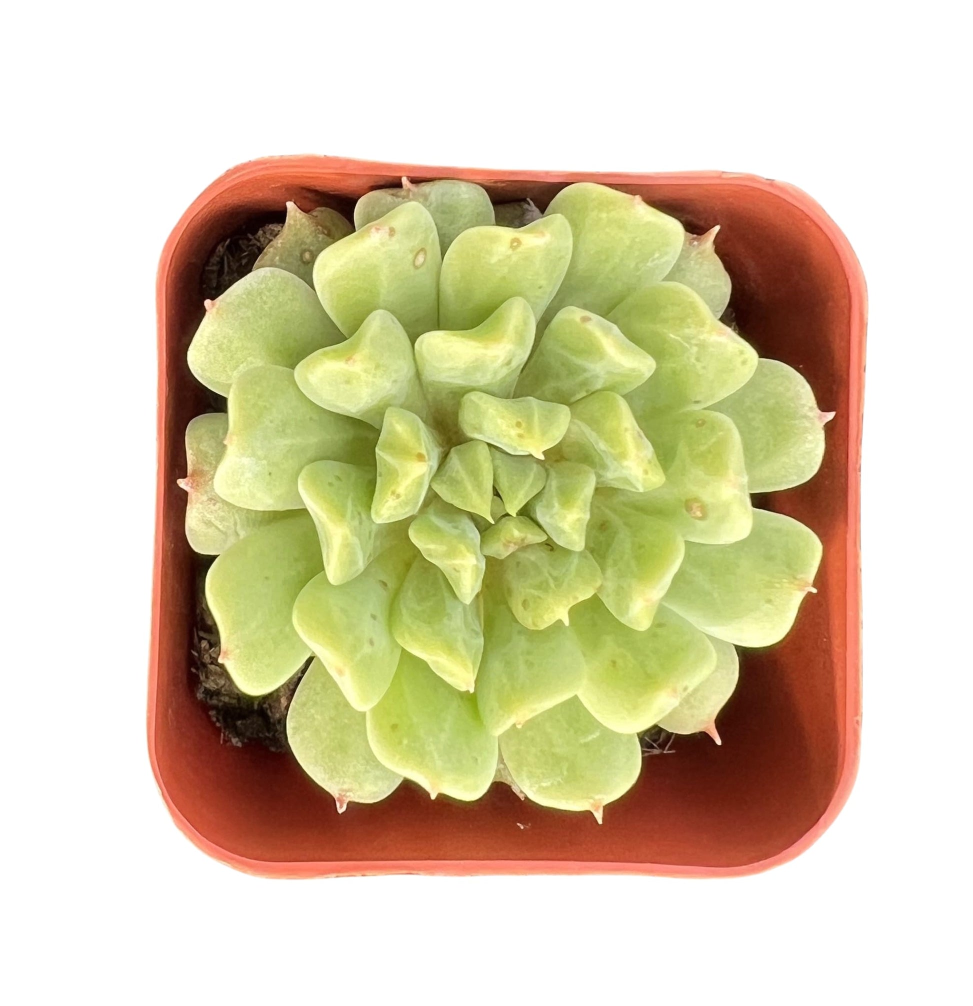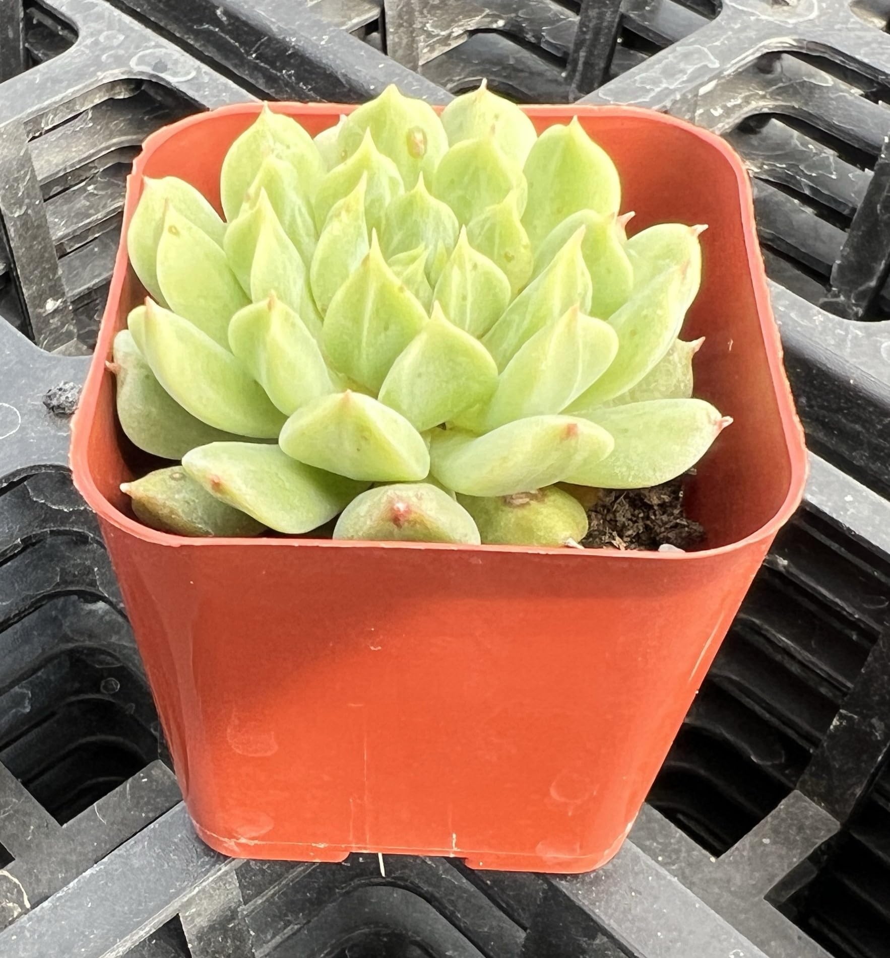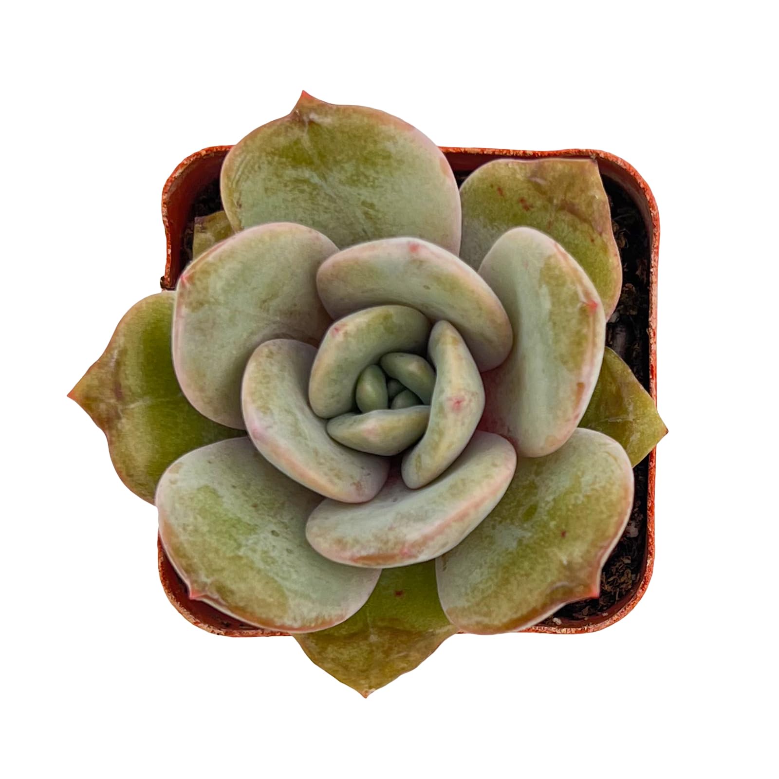 - Echeveria Minima - Echeveria Minima is a small, blue-green rosette succulent with leaves packed so densly and symmetrically. The edges of the leaves turn pink when stressed. Echeveria Minima is easily to form cluster when it grow and produce new offsets. Yellow to reddish blooms in the spring