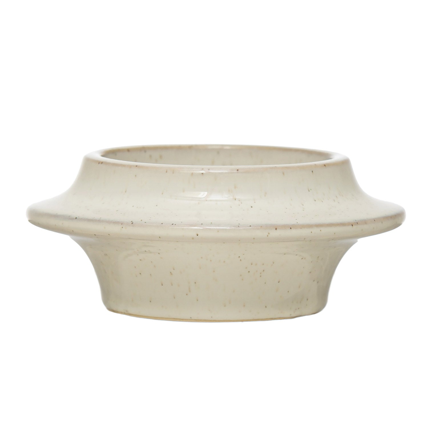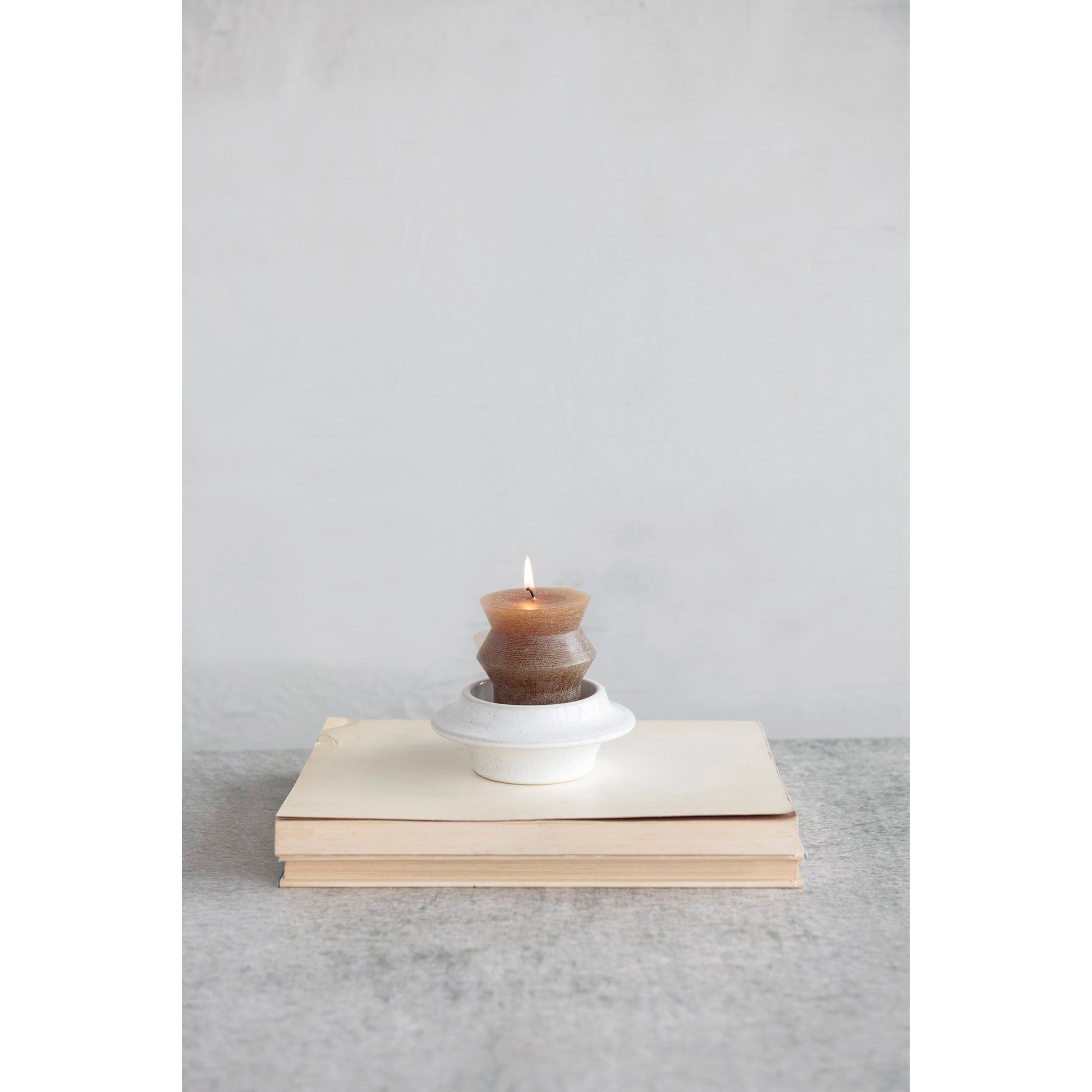 Round x 2"H Stoneware Tealight/Pillar Holder, Reactive Glaze, White