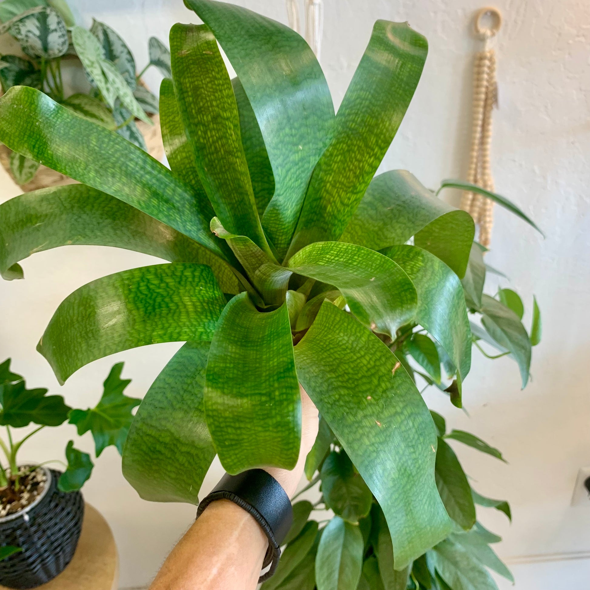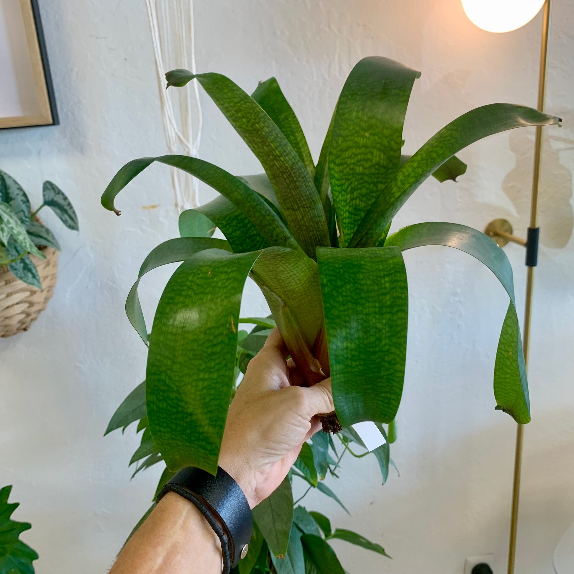 The “Nova” has more mottling on its leaves than the standard Vriesea Gigantea and it can grow large - up to 30” wide.