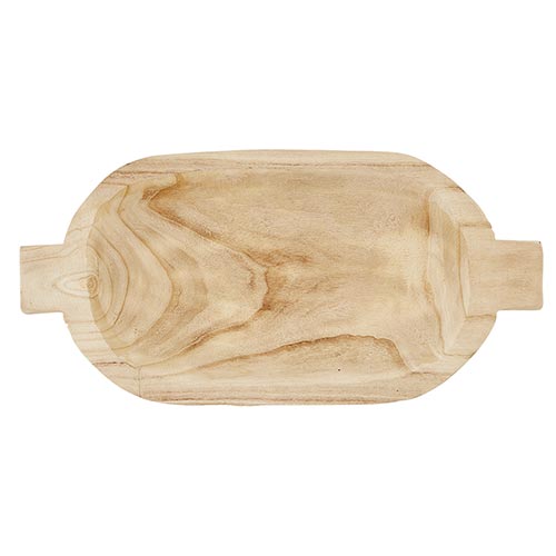 Mango wood decorative wood bowl/tray. Measures 17.5" long, by 9" wide, 3" tall.