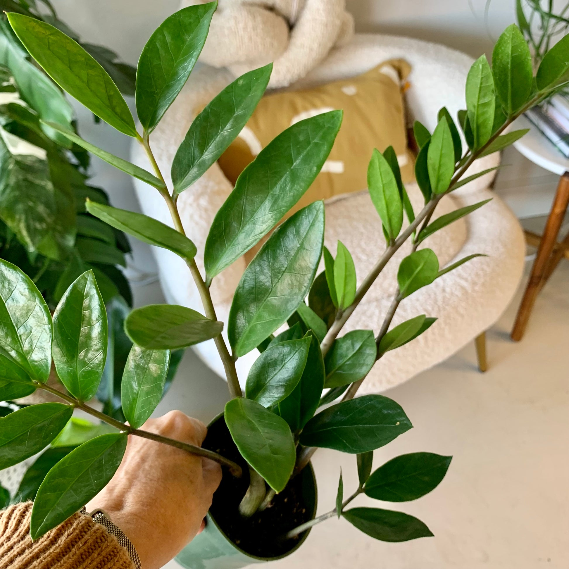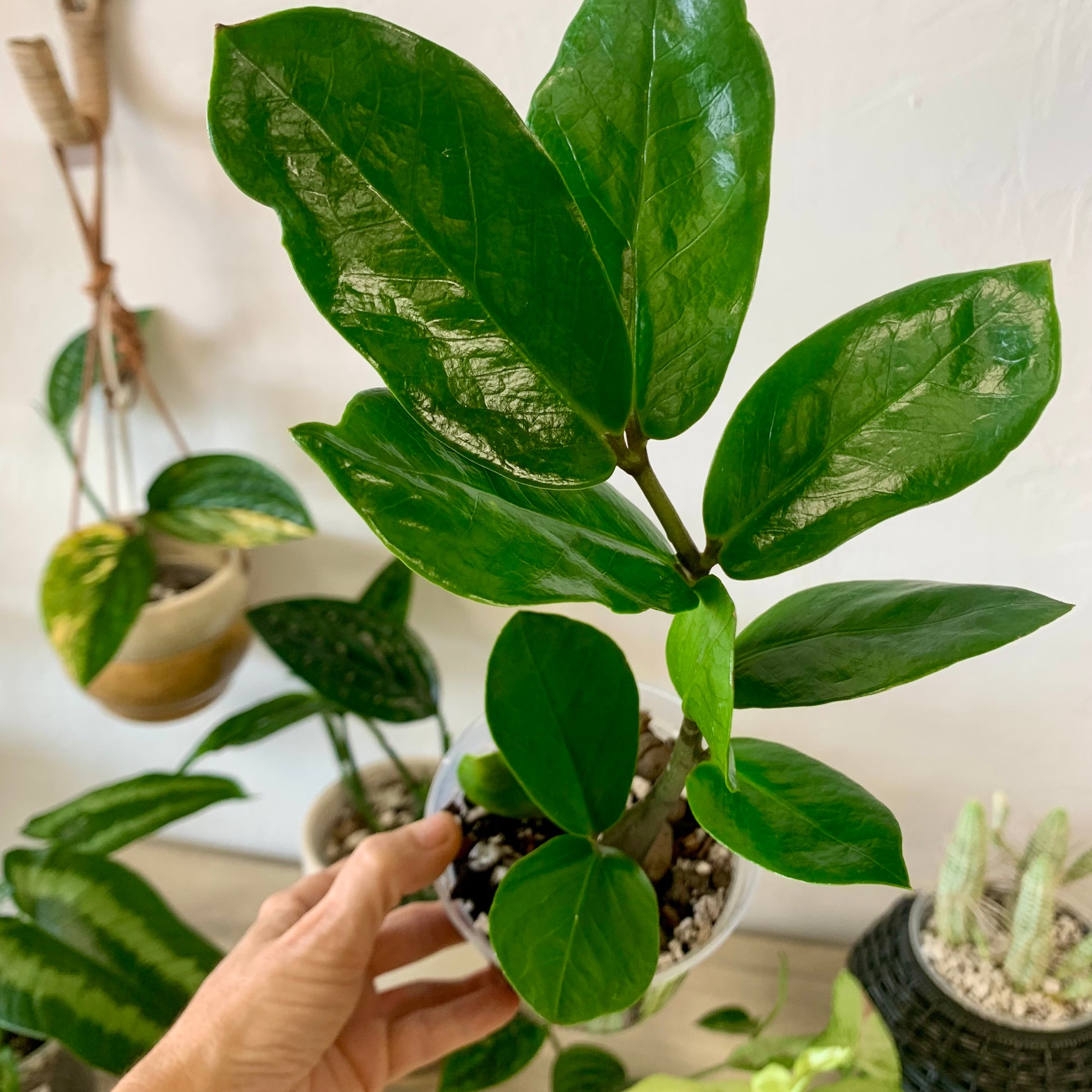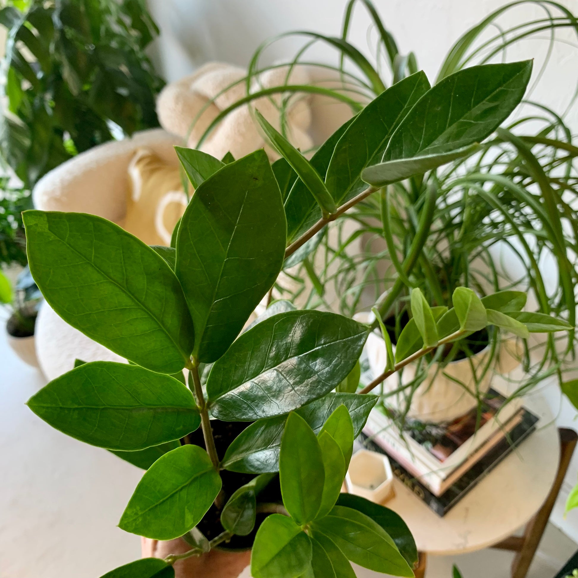 The Zamioculcas Zamiifolia better known and more easily pronounced as the ZZ plant, is one of the hardest plants to kill. In fact it’s so tenacious that the ZZ can regenerate itself from a single leaf cutlet. The ZZ's deep green, glossy leaves have a unique spread that look great on their own or in a cluster of plants.
