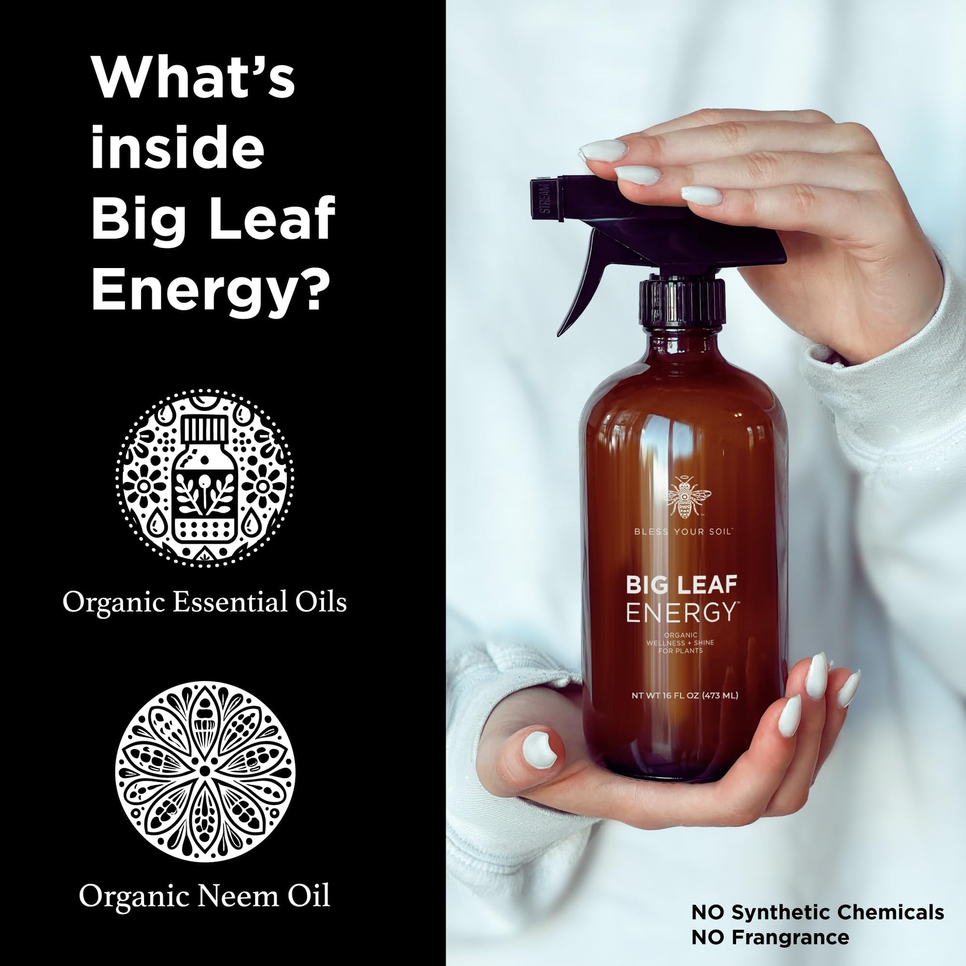 - FOR ORGANIC HOUSEPLANT CARE & GARDENING: Meet the glow-up your plants didn’t know they needed. Big Leaf Energy isn’t just neem—it’s neem with benefits, it's neem oil bliss in a bottle. Our 7-essential oil wellness blend goes beyond basic to give your plants (and your nose) something to love.