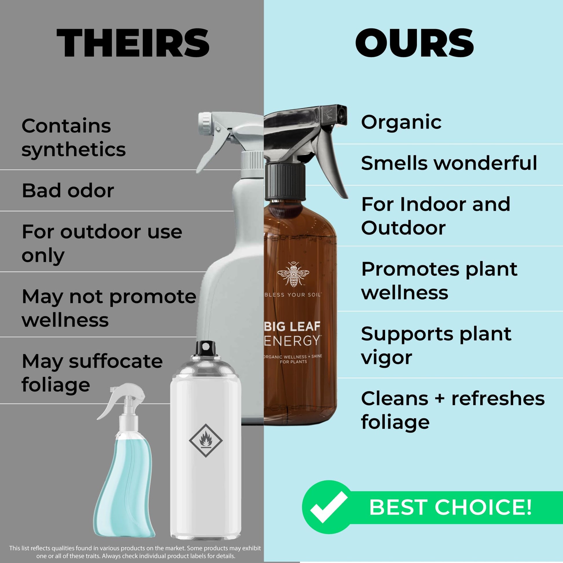 - MULTI-PURPOSE : Experience the 4-in-1 plant health benefits of Big Leaf Energy. Boost the resilience of your plants, guard against common ailments, enhance leaf shine and beauty, and promote organic gardening practices, all without the use of harmful chemicals.