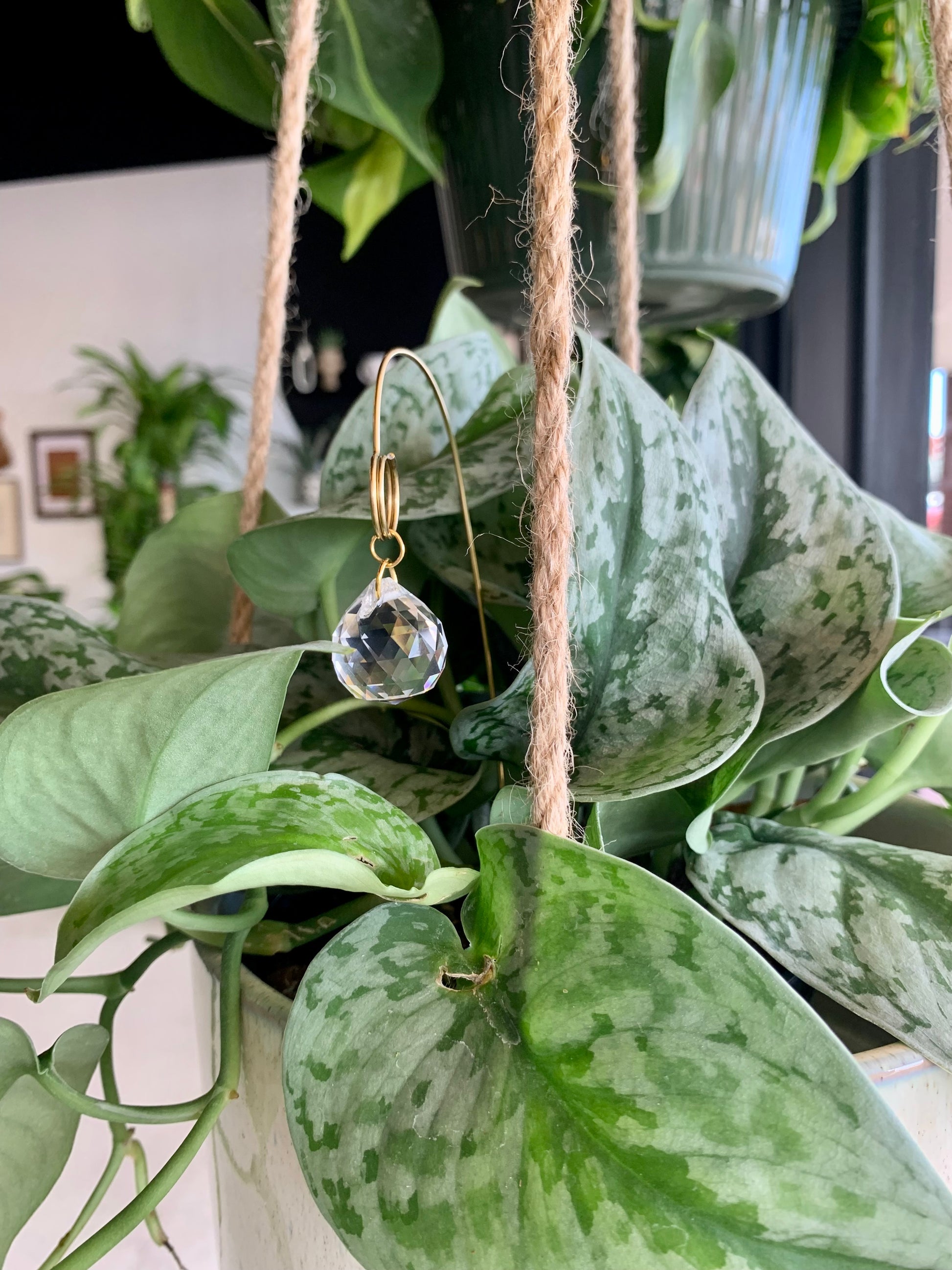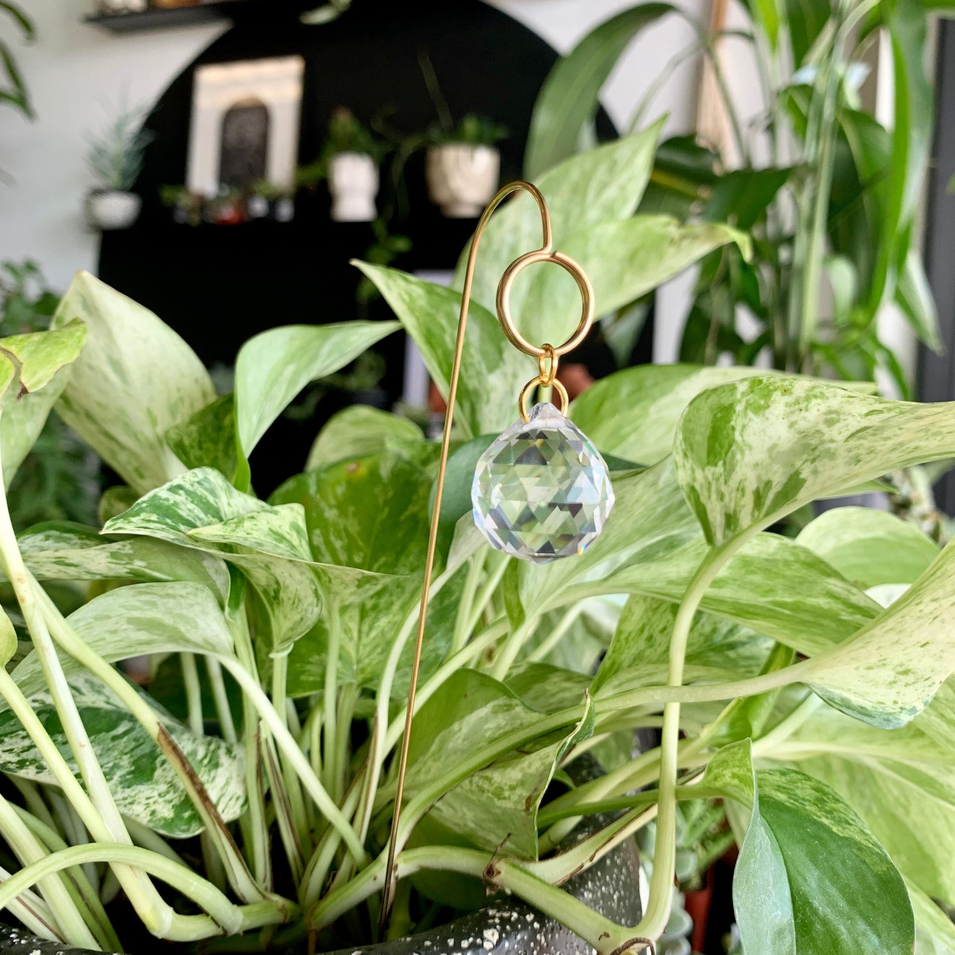 Bling your plant! Super cute 1" dangling crystal ball from a 10" tall gold metal wire stake. Bring some sparkle in your life, and your plants.