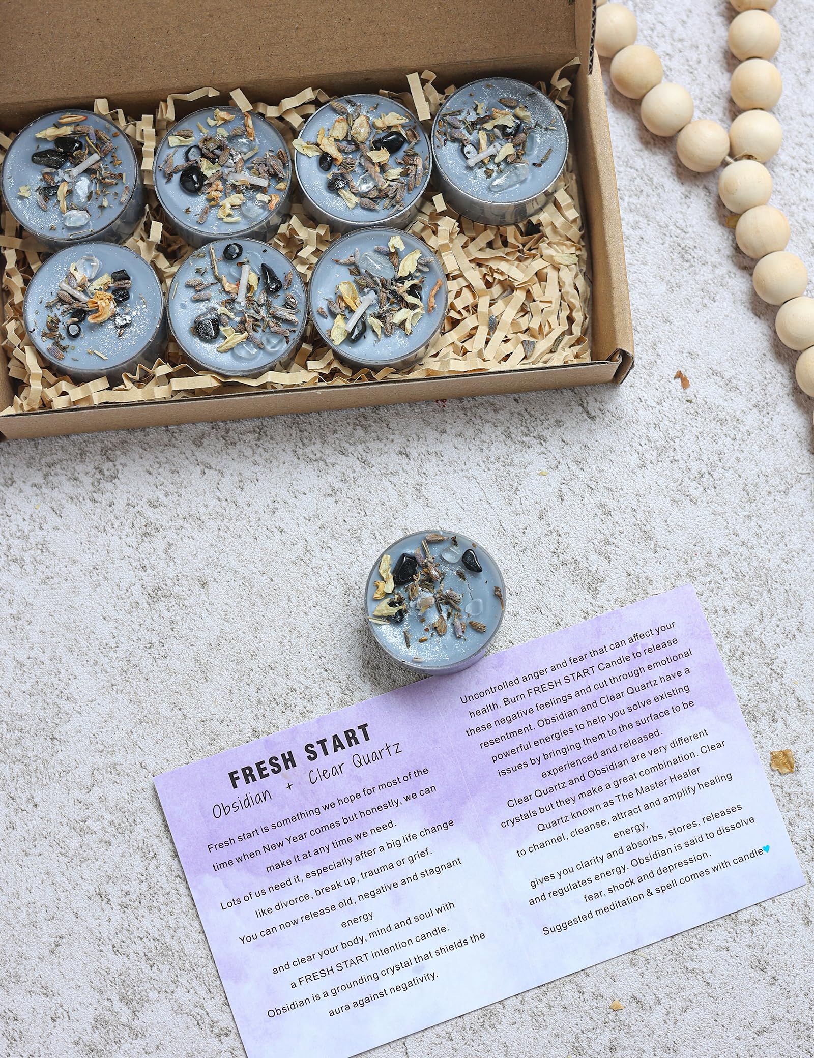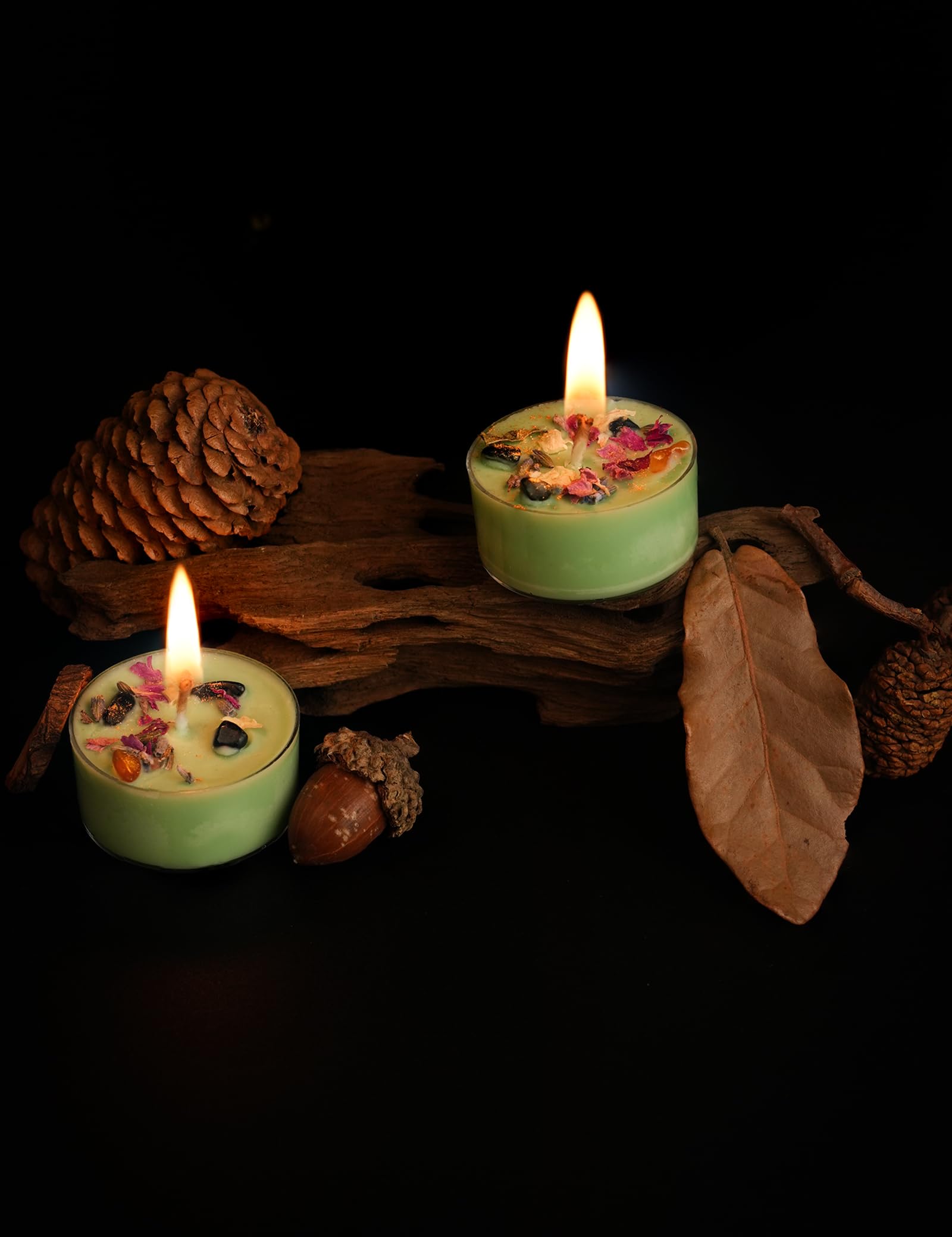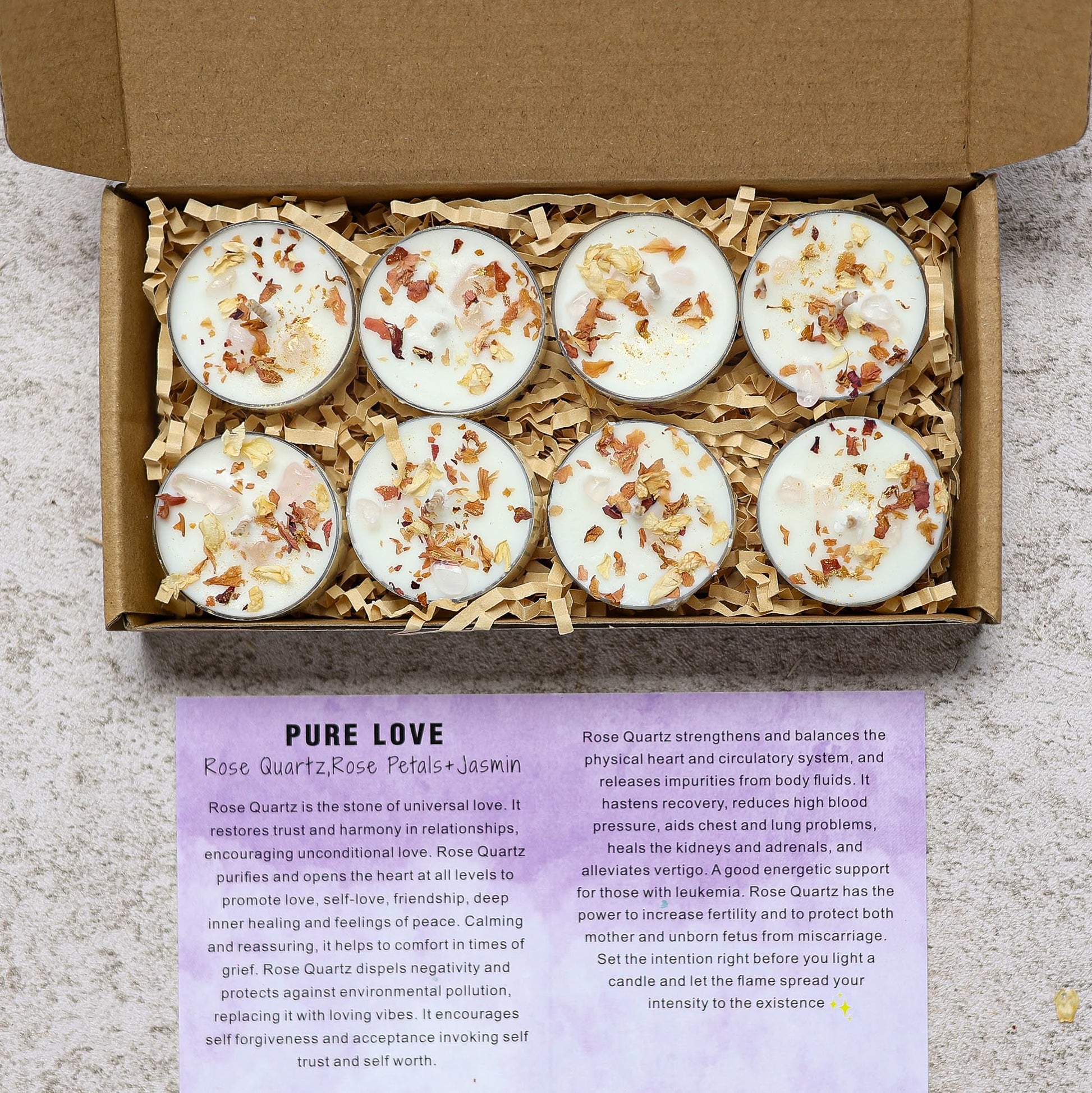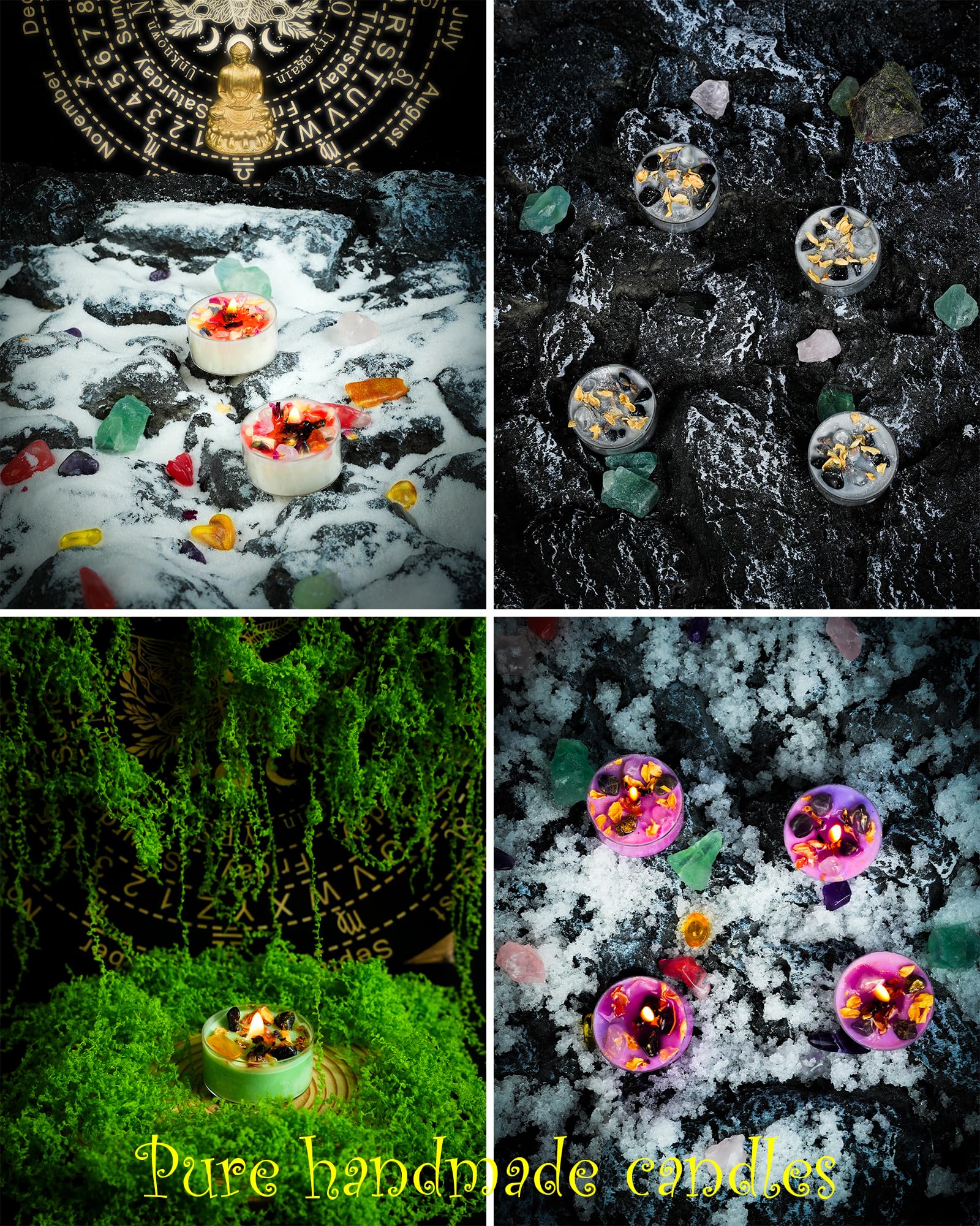 - Each tea candle is handmade and hand-filled in our store with 100% soy wax for a long, clean burn! These handmade candles will spread positive and loving energy throughout your home.