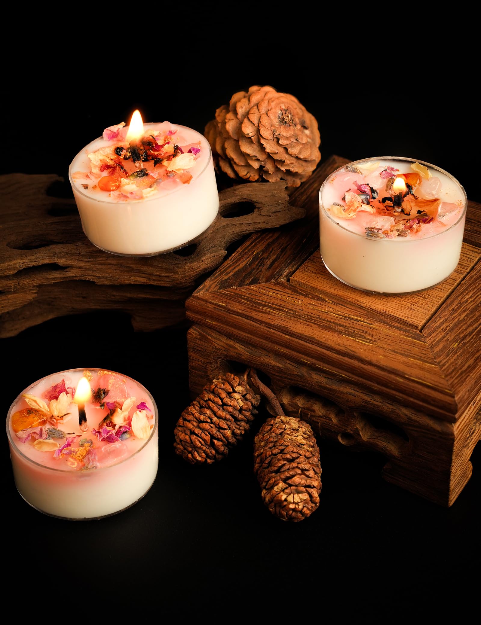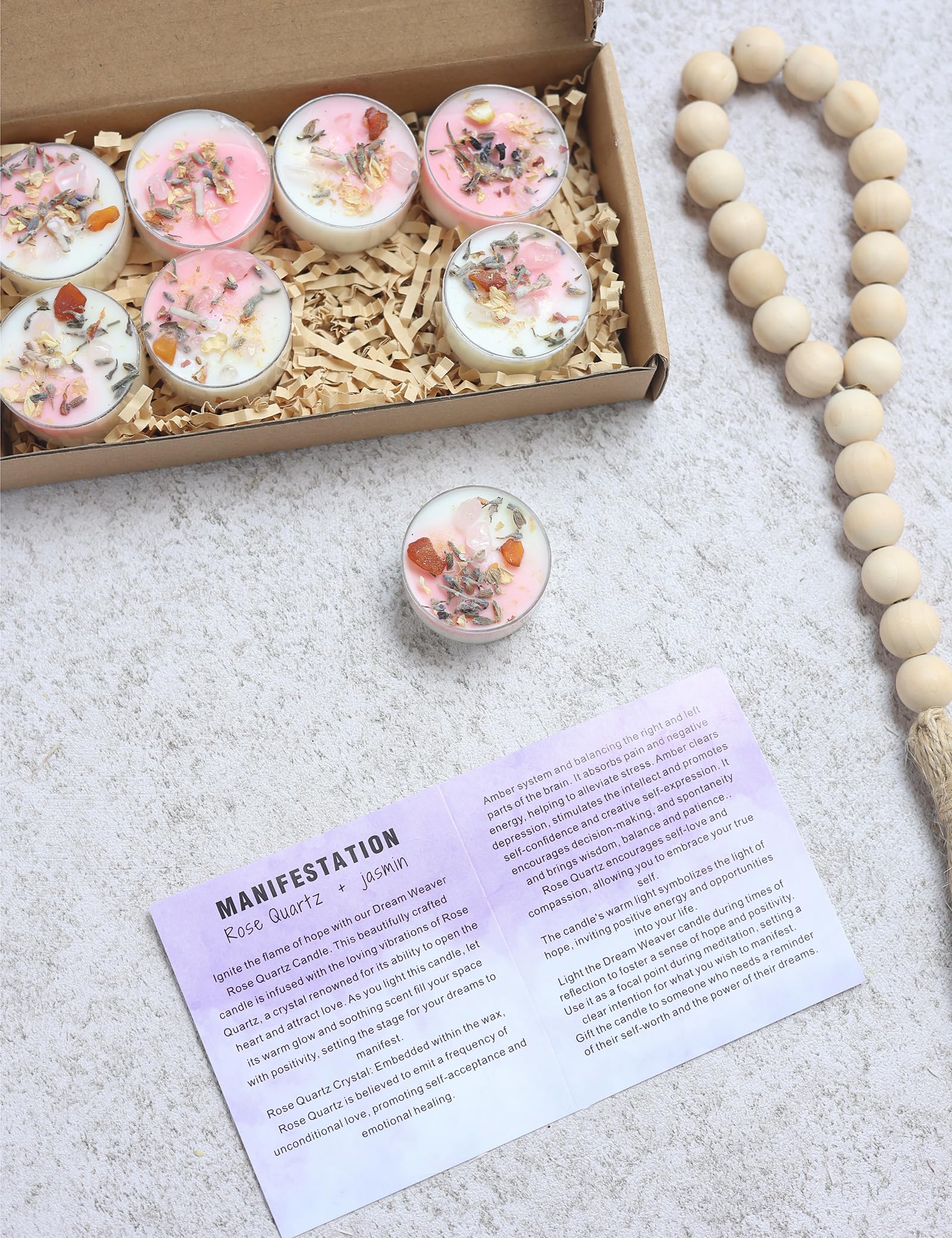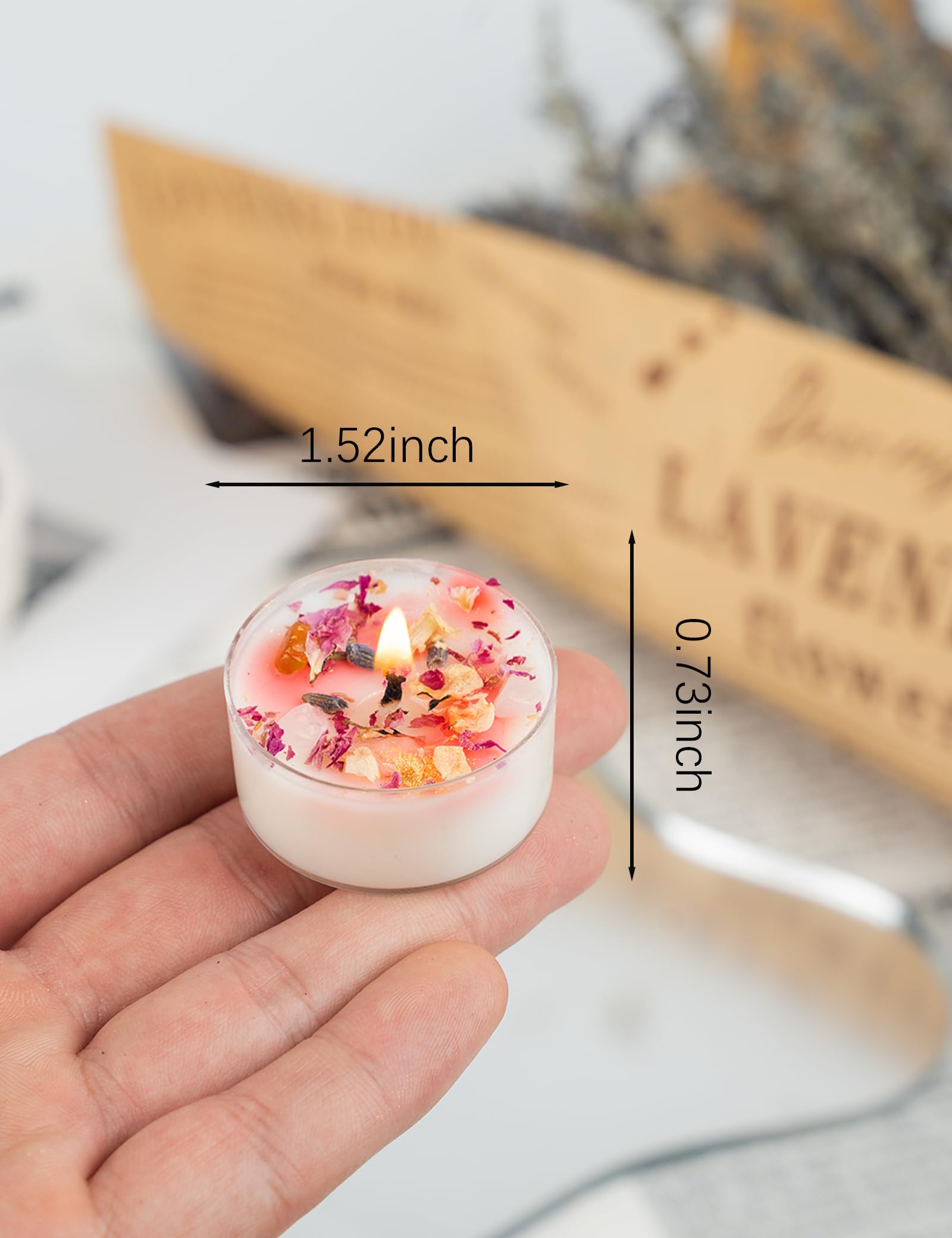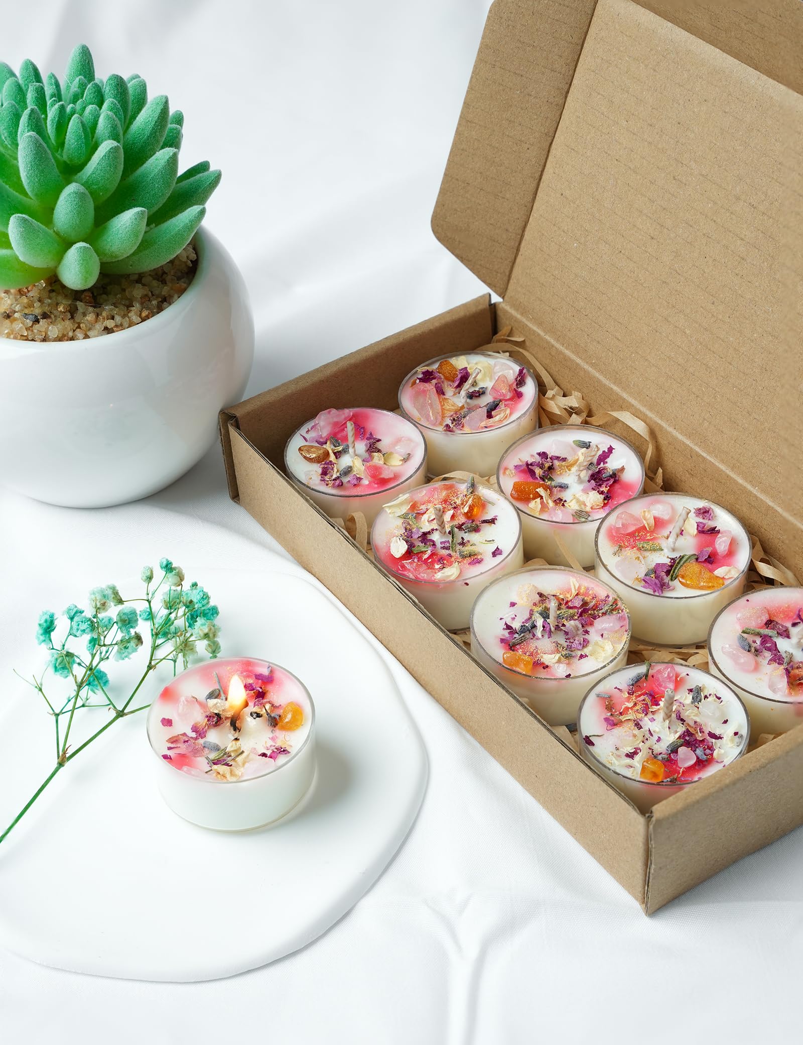 - Each tea candle is handmade and hand-filled in our store with 100% soy wax for a long, clean burn! These handmade candles will spread positive and loving energy throughout your home.