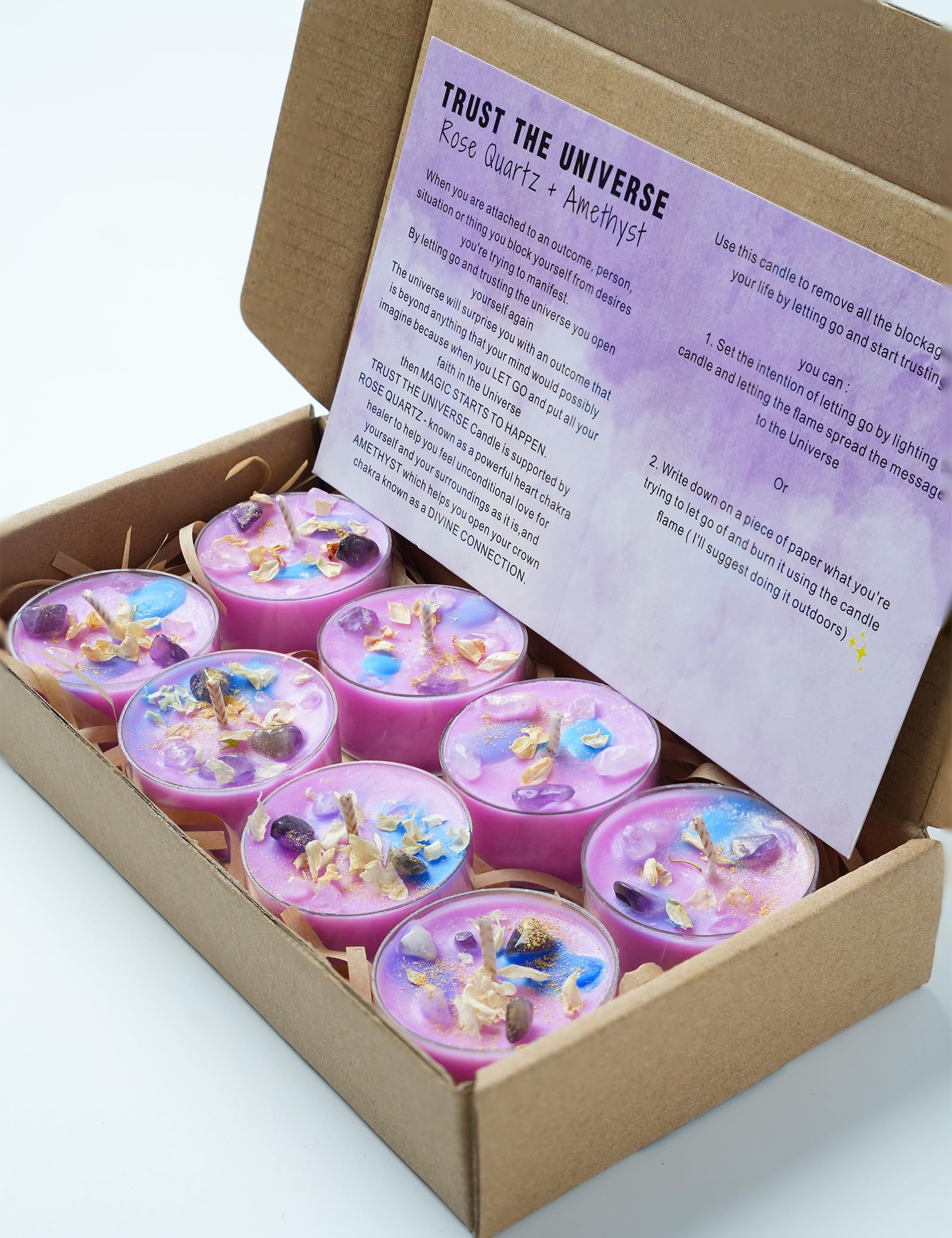 - Tea Lights 8 Mixed Candle Set: contains a mixed pack of 4 different scents. Both options make a great gift for any candle lover!